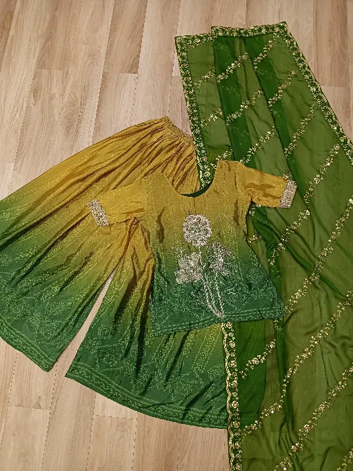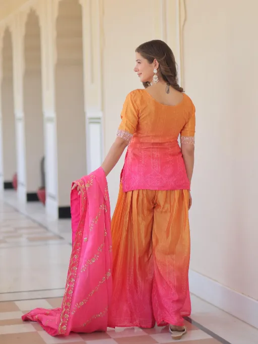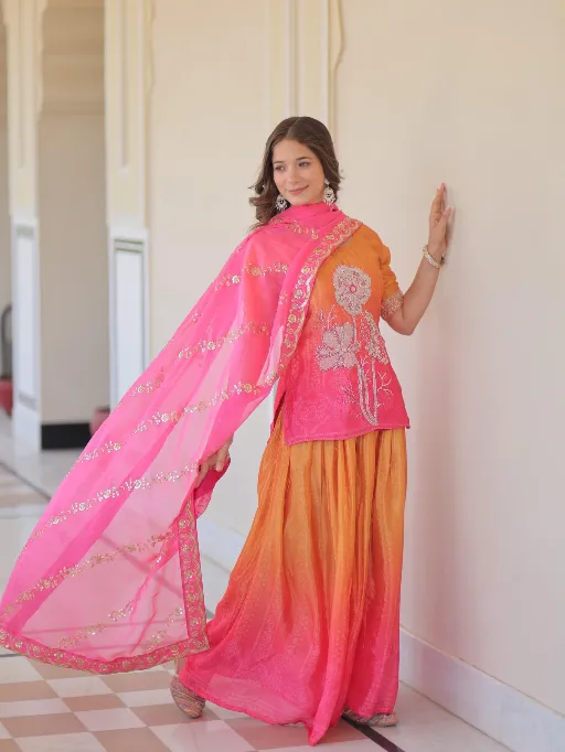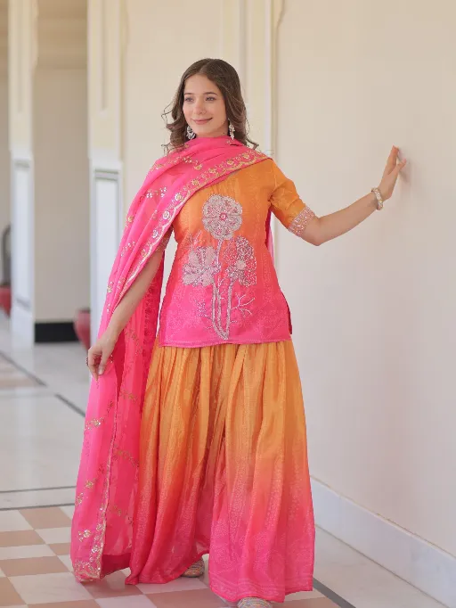 LW-9251 Readymade Chinnon Printed Beads Embroidered Sharara Suit.