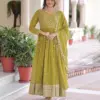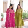 - Step into refined elegance with this premium readymade gown–dupatta set, crafted to deliver a luxurious look with effortless comfort. Designed for women who love statement ethnic wear, this ensemble is ideal for festive occasions, parties, weddings, and evening celebrations.