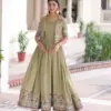 - Available in two eye-catching shades—Parrot Green and Purple—this premium gown set is perfect for women who love standout ethnic fashion with a modern edge.