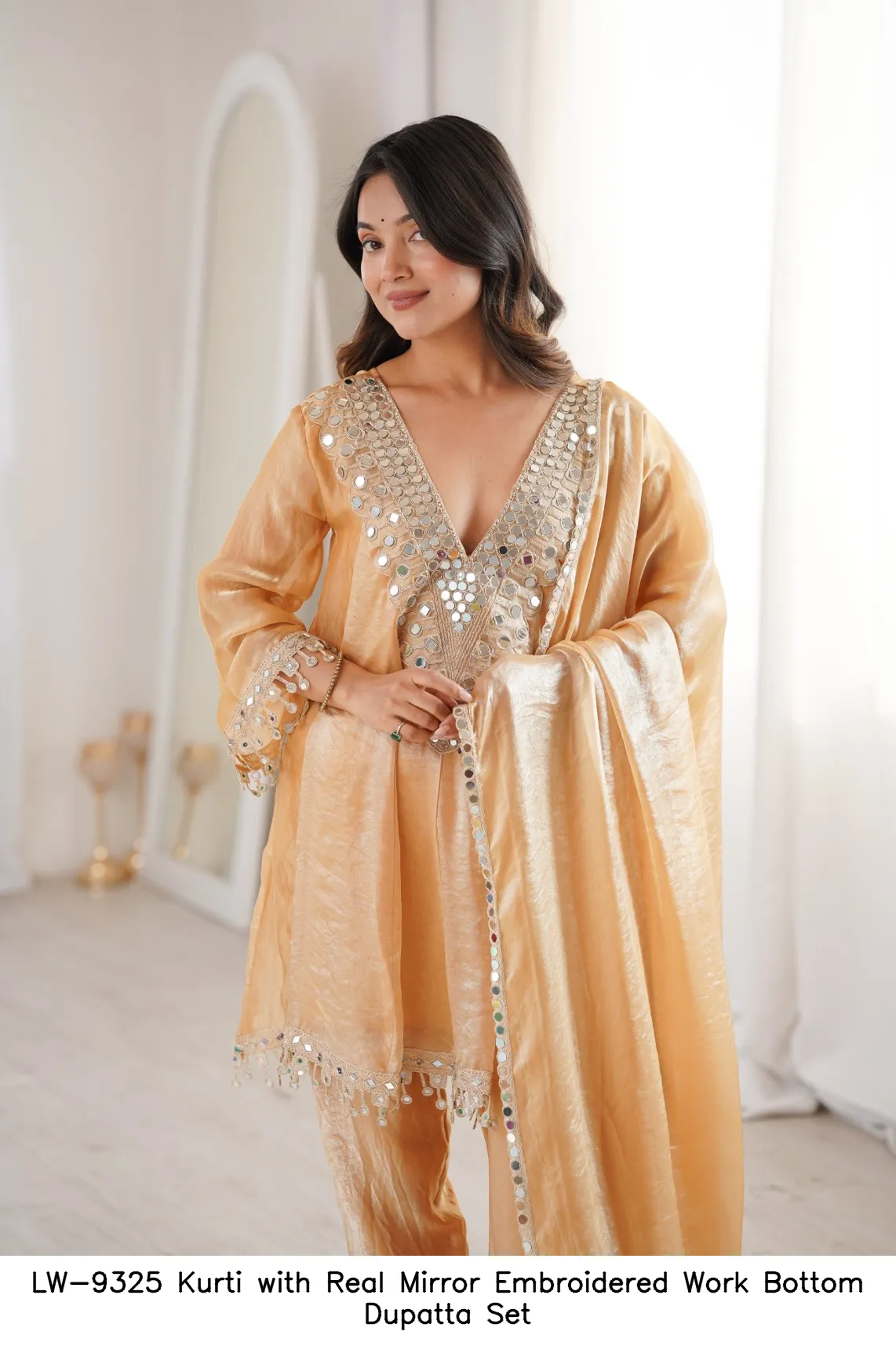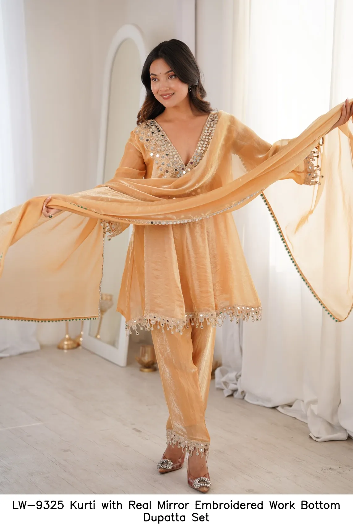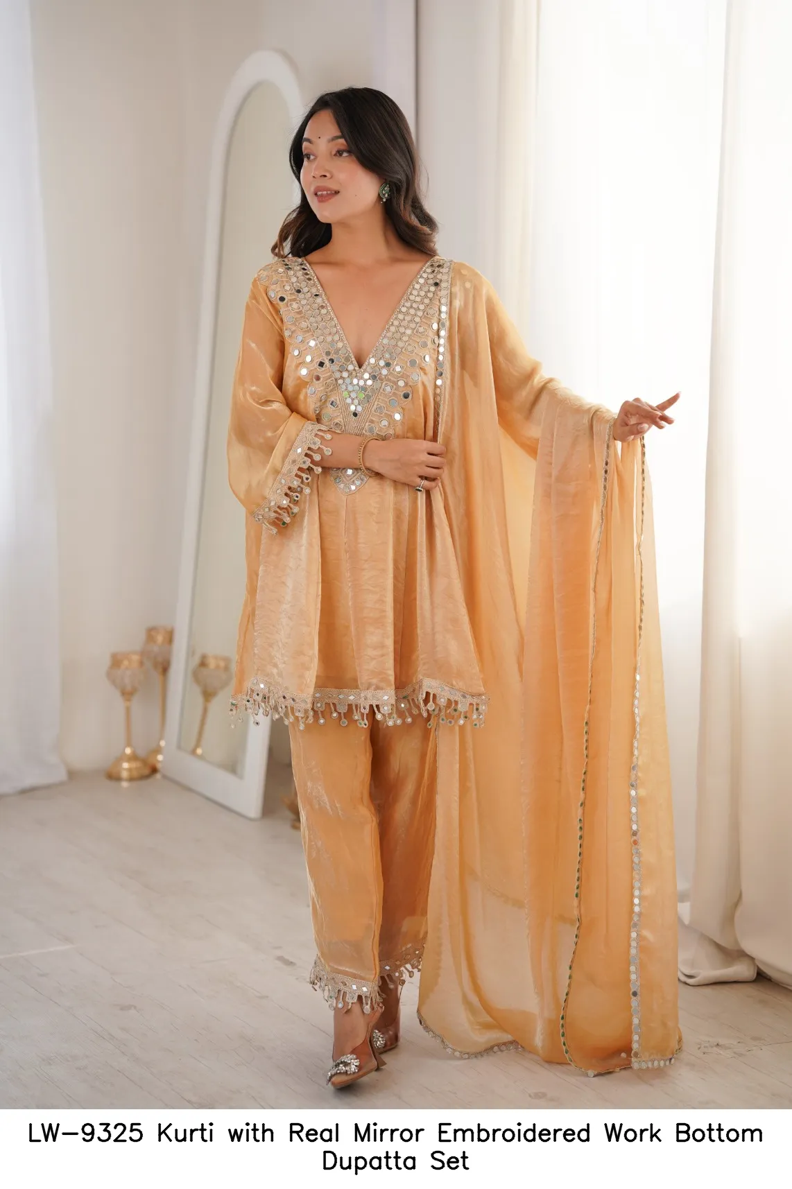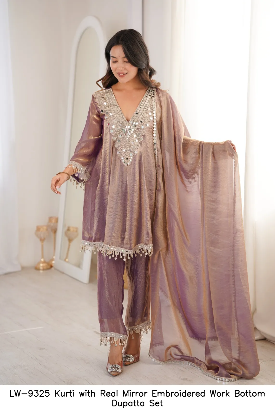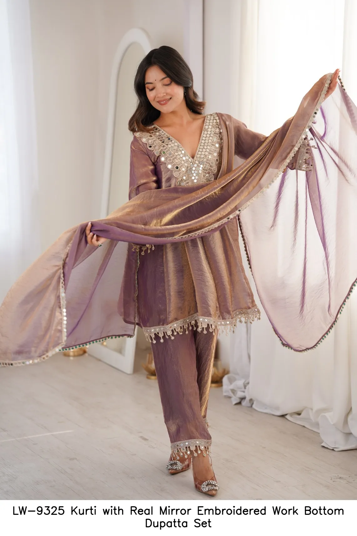LW-9325 Kurti with Real Mirror Embroidered Work Bottom Dupatta Set