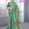 - Saree: Heavy Georgette With Foil And Satin Silk Border – This describes the material of the saree, which is heavy Georgette with foil and satin silk border.
