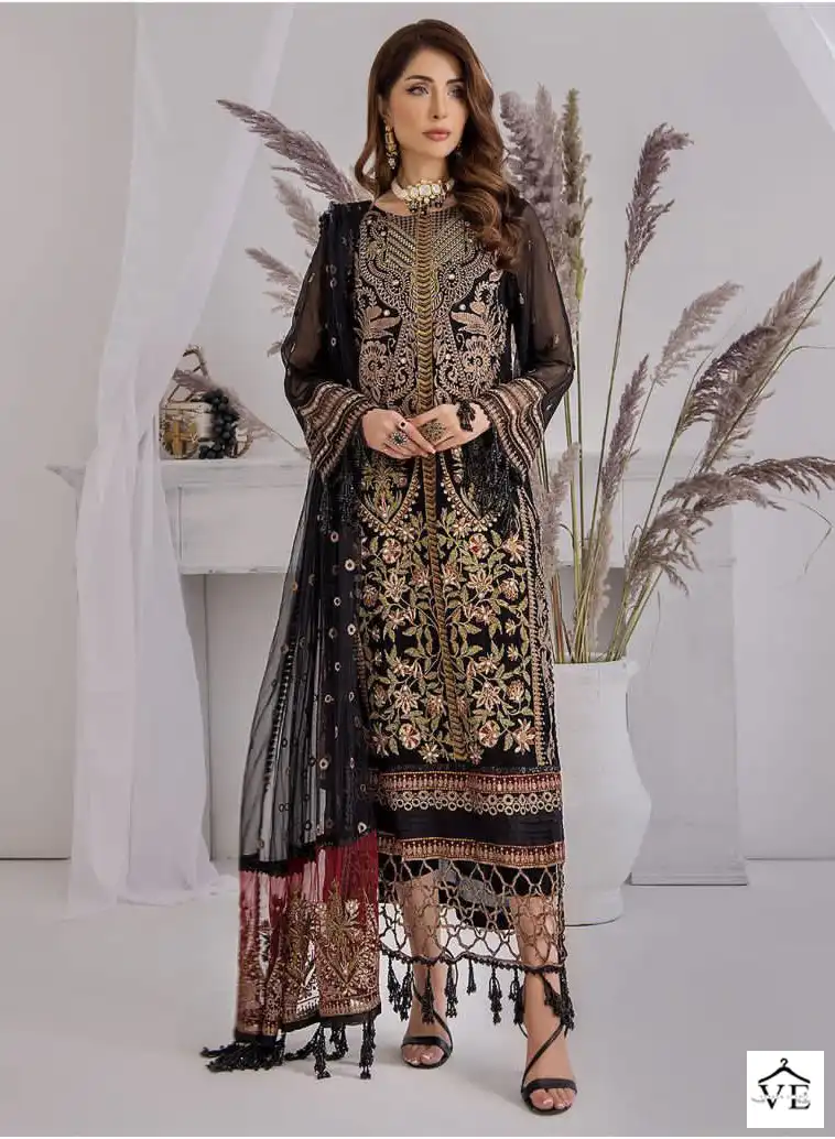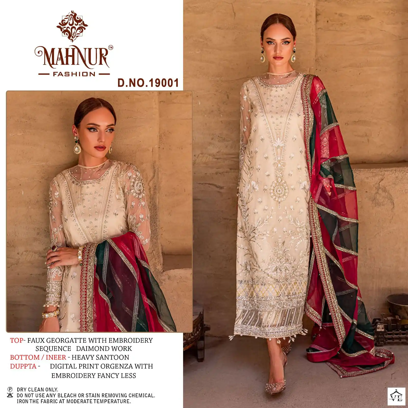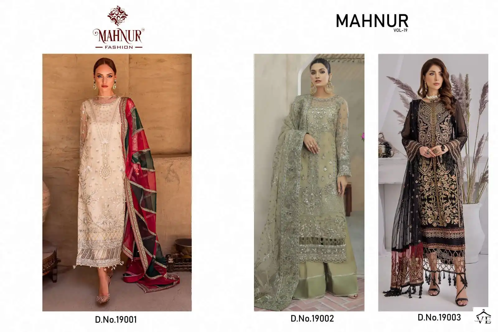 Mahnur Vol 19 Heavy Georgette Wholesale Pakistani Suits Catalog of 3 Pcs. We deal in Kurtis, Sarees, Dresses Materials, Leggings, and Designer Salwar Kameez.