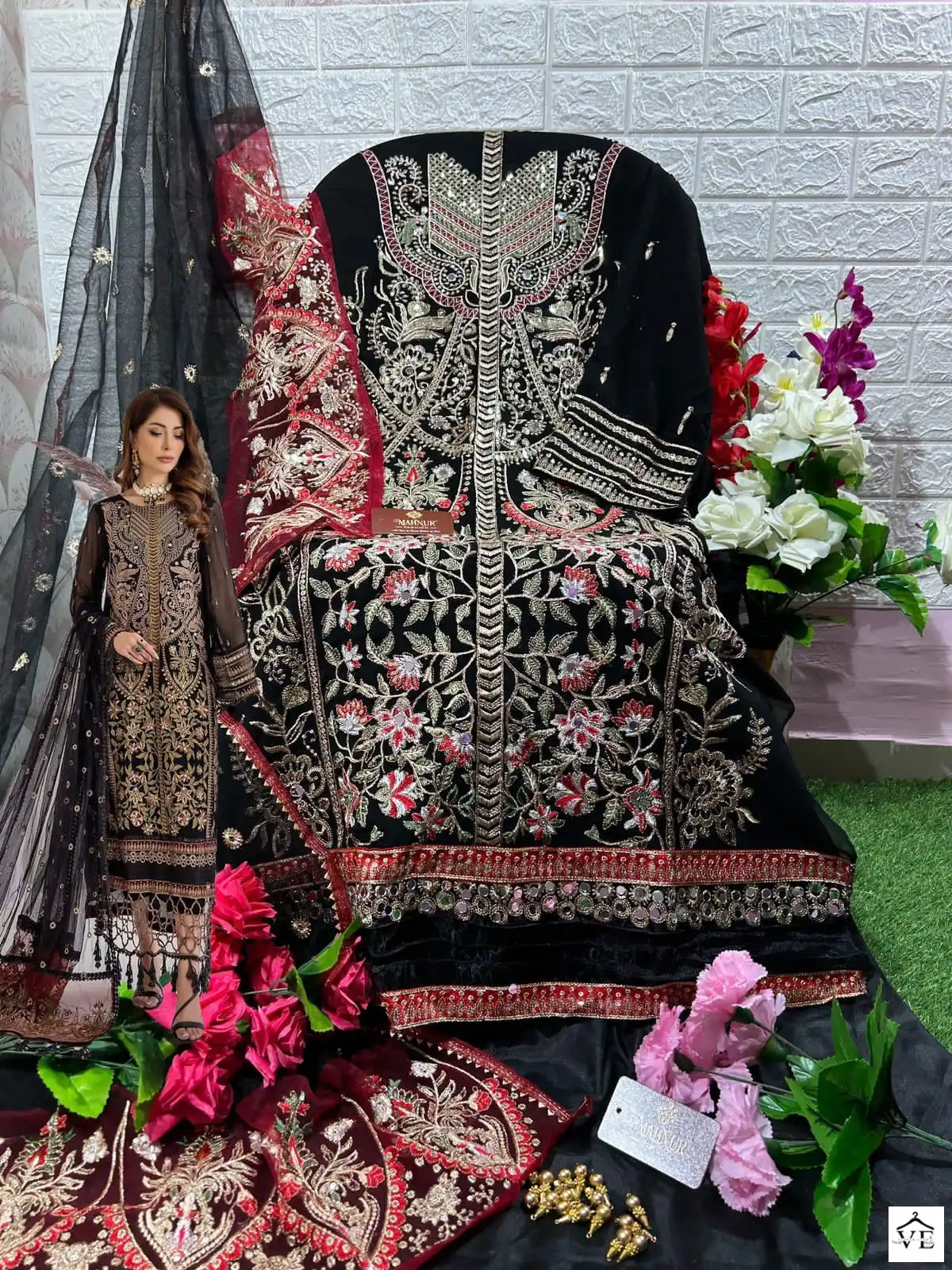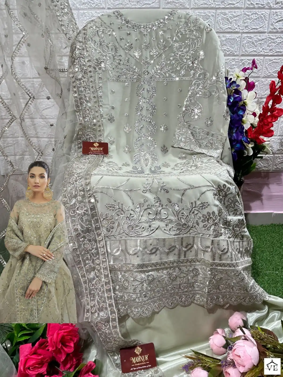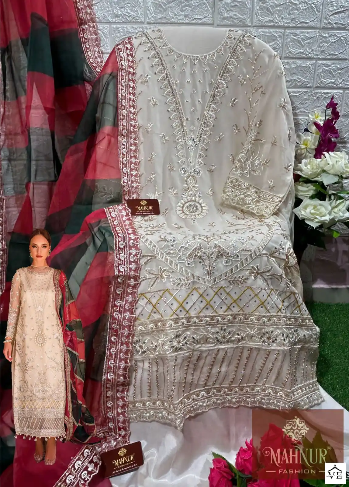 Mahnur Vol 19 Heavy Georgette Wholesale Pakistani Suits Catalog of 3 Pcs. We deal in Kurtis, Sarees, Dresses Materials, Leggings, and Designer Salwar Kameez.