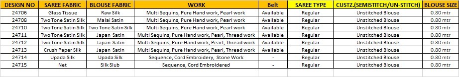 | Saree | Premium Multi Sequins, Pure Handwork, Pearl Work |