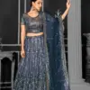 Blouse: The net blouse, tailored to fit up to a 42″ bust and waist, complements the lehenga flawlessly. Its delicate detailing and intricate craftsmanship enhance its allure, ensuring you stand out effortlessly in any crowd.