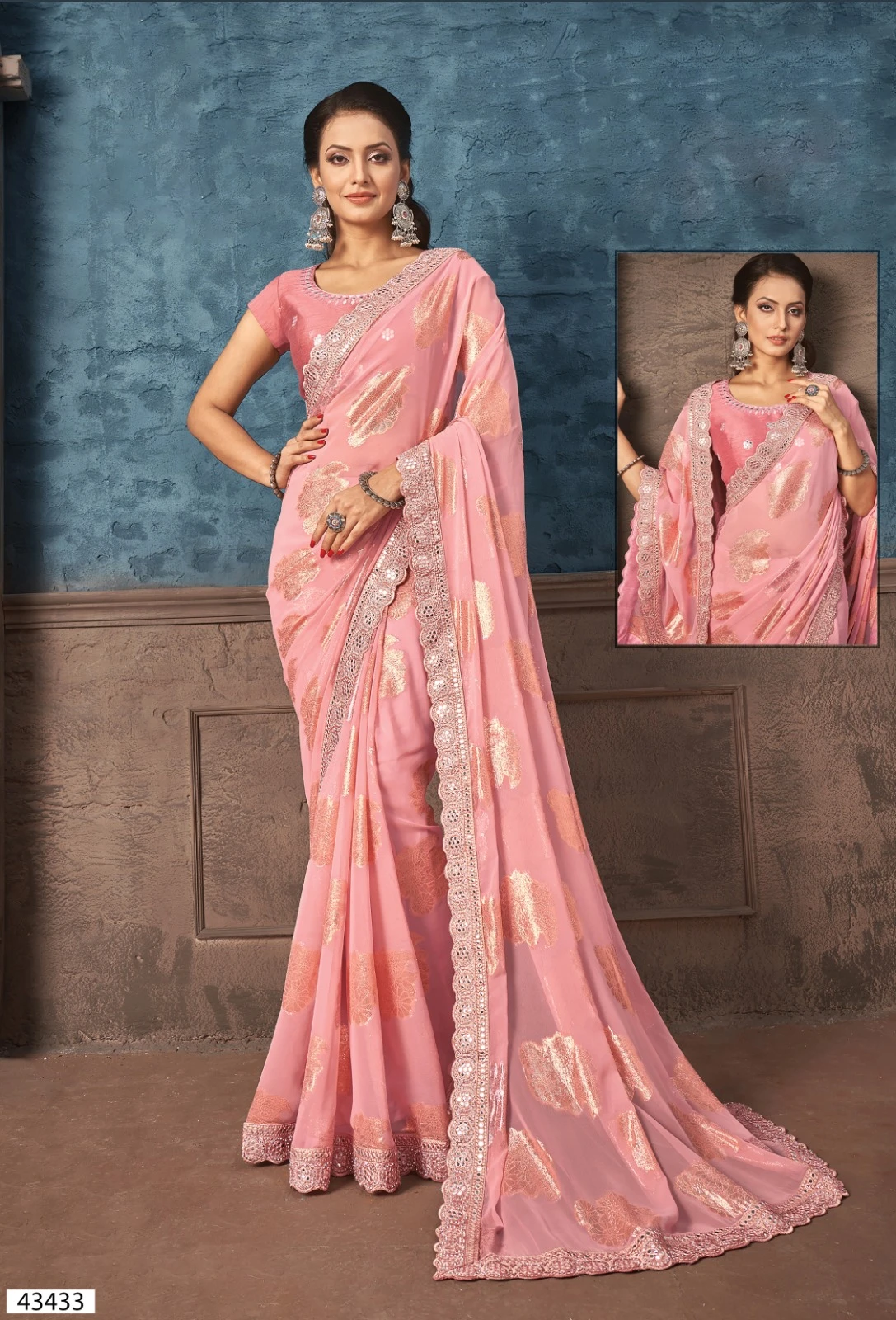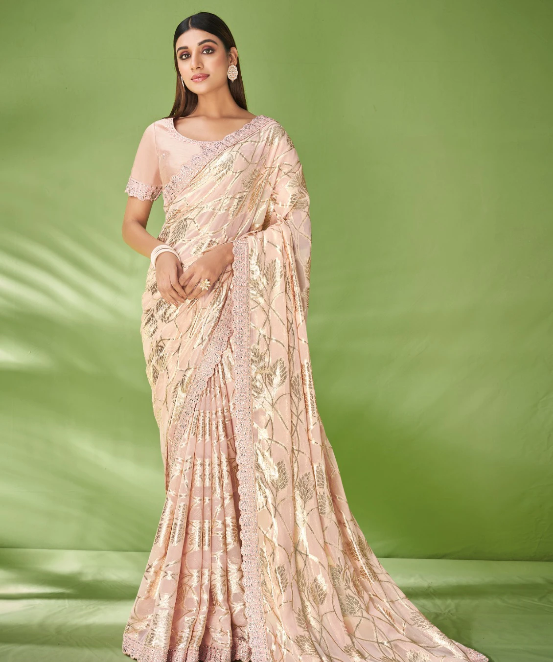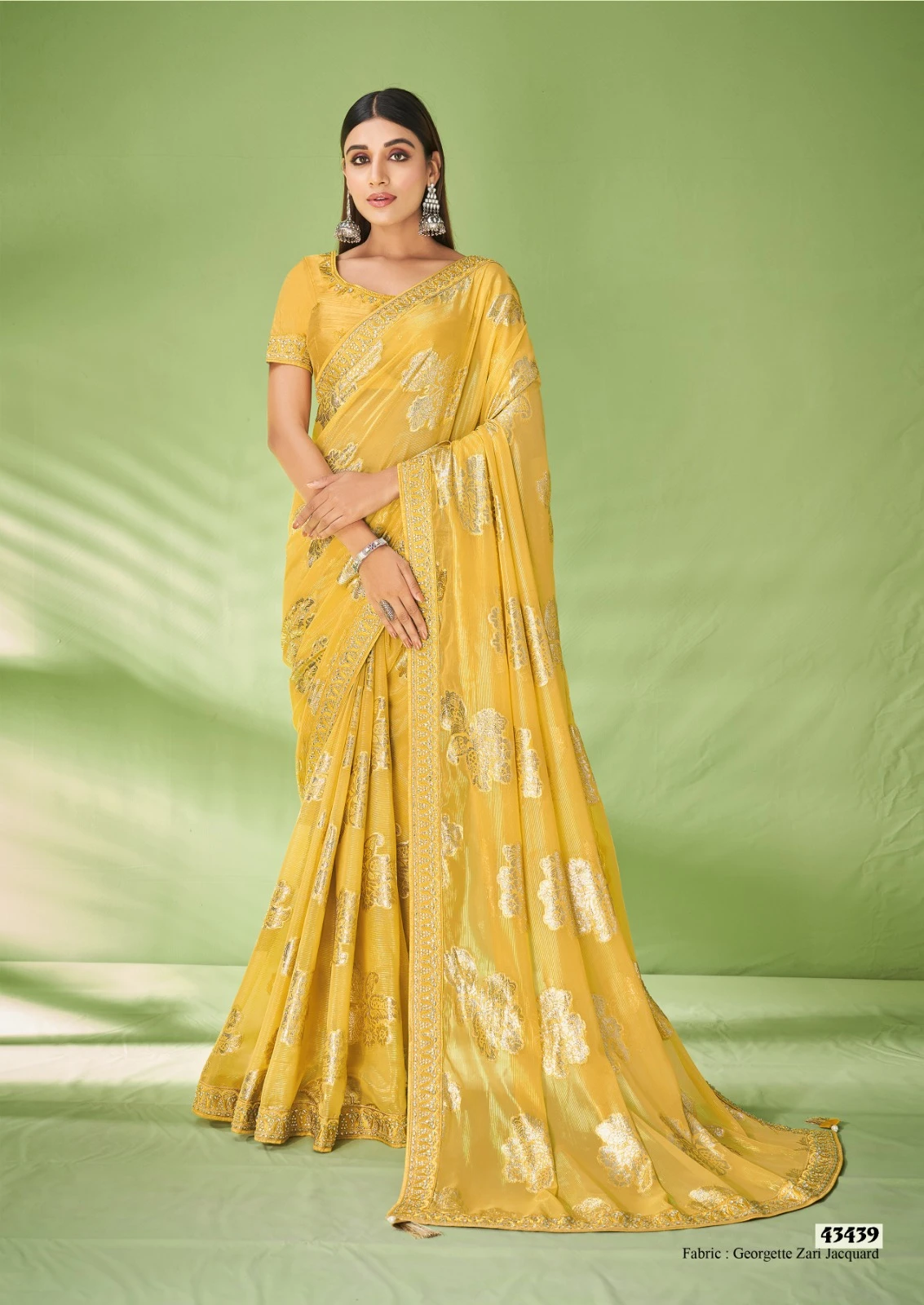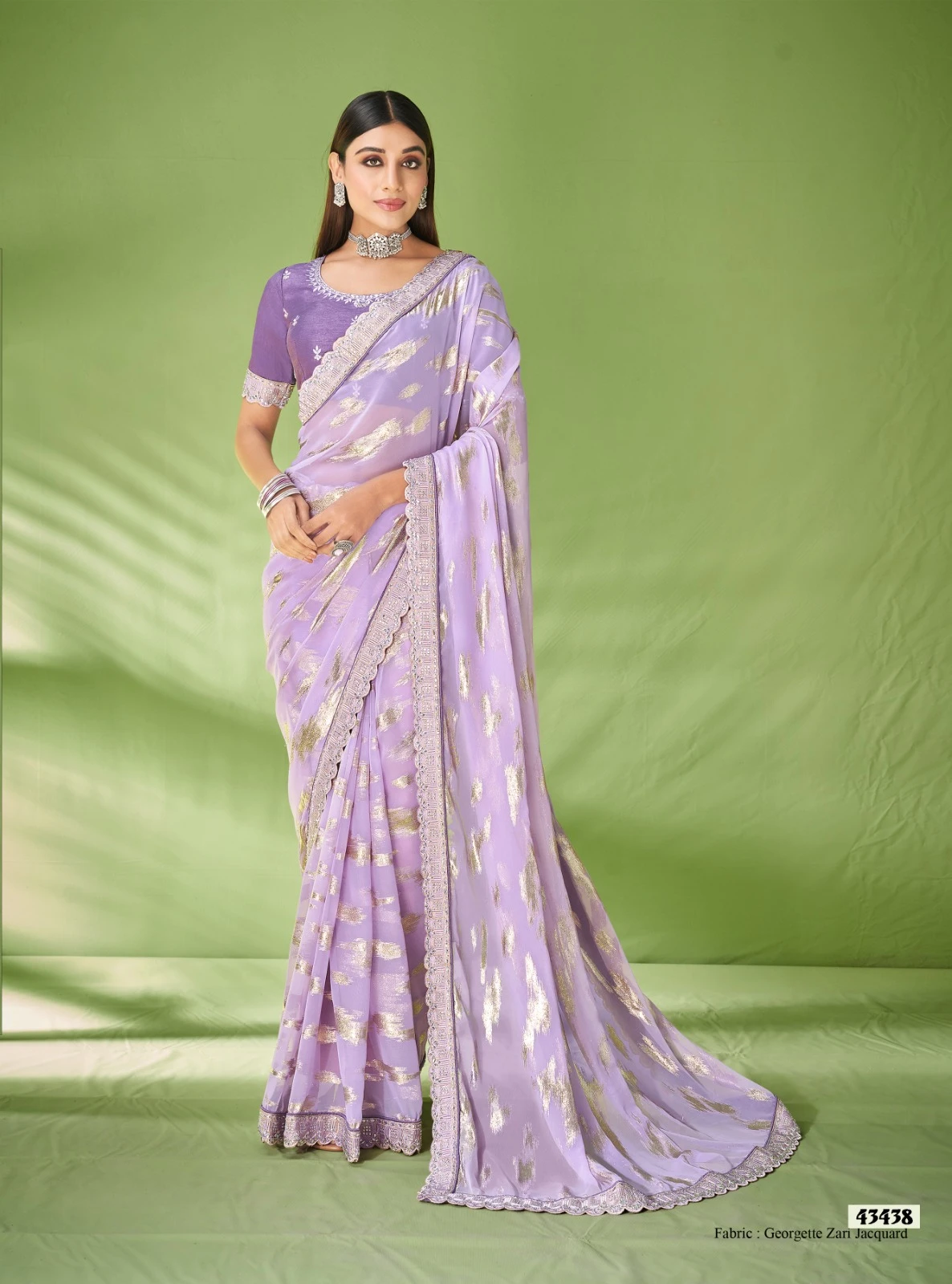 - Saree: Georgette Zari Jacquard Foil Print & Embroidery Work