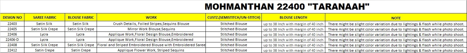 - Saree: Each set includes a beautifully crafted Saree with an attached Blouse for a seamless and elegant look