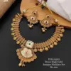 Immerse yourself in the grandeur of our Majestic Brass High Gold Antique Necklace Set, a true testament to classical beauty. This set, crafted with precision, showcases a high gold finish on brass, giving it a rich and opulent feel. The necklace is adorned with delicate filigree work and embellished with enamel accents in earthy tones, complemented by meticulously placed gemstones that add a subtle sparkle. The design is inspired by traditional motifs, featuring ornamental drops that enhance its antique charm. Accompanied by matching earrings, this set is perfect for those who seek to add a touch of royalty to their attire.