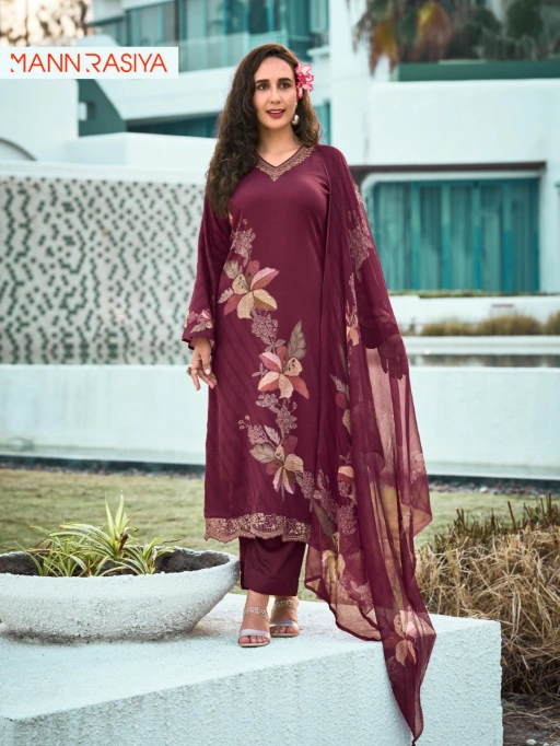 Buy Mannrasiya Kavish Pure Jaam Cotton Wholesale Salwar Kameez Collection online at wholesale price. Featuring a premium blend of digital prints and fancy work, this collection combines traditional aesthetics with contemporary elegance.