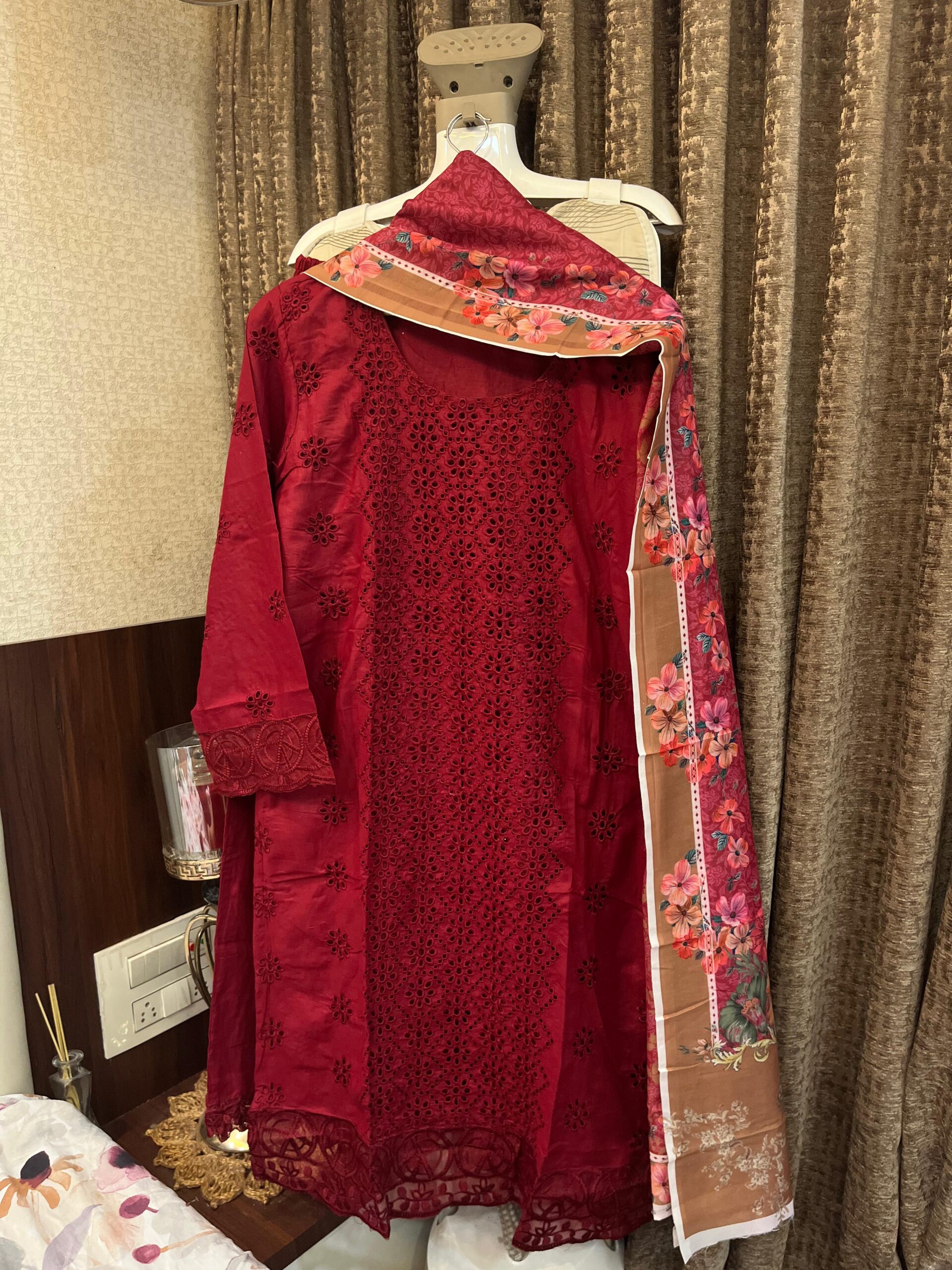 ✓Pure cotton chikankari work ✓Attached pant patch ✓Cotton dupatta ✓₹850 + GST ✓Sizes XL & XXL