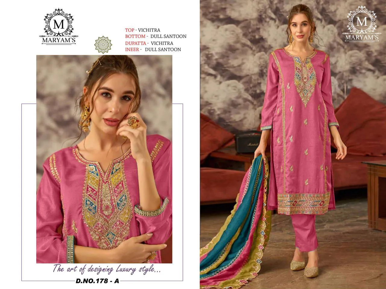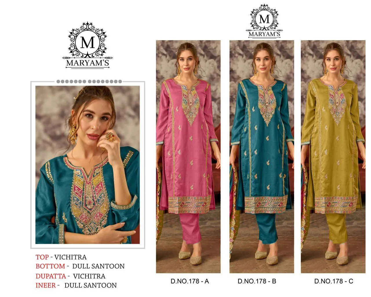 Maryams 178 Vichitra Embroidered Wholesale Pakistani Suit Collection