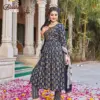 This ensemble is available in multiple sizes, including M, L, XL, XXL, and 3XL, ensuring a comfortable and flattering fit for various body types.
