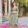 Enhance your style with this exquisite Heavy Capsule Foil Ensemble adorned with stunning sequin work. This ensemble is designed to make you look elegant and glamorous on various occasions.