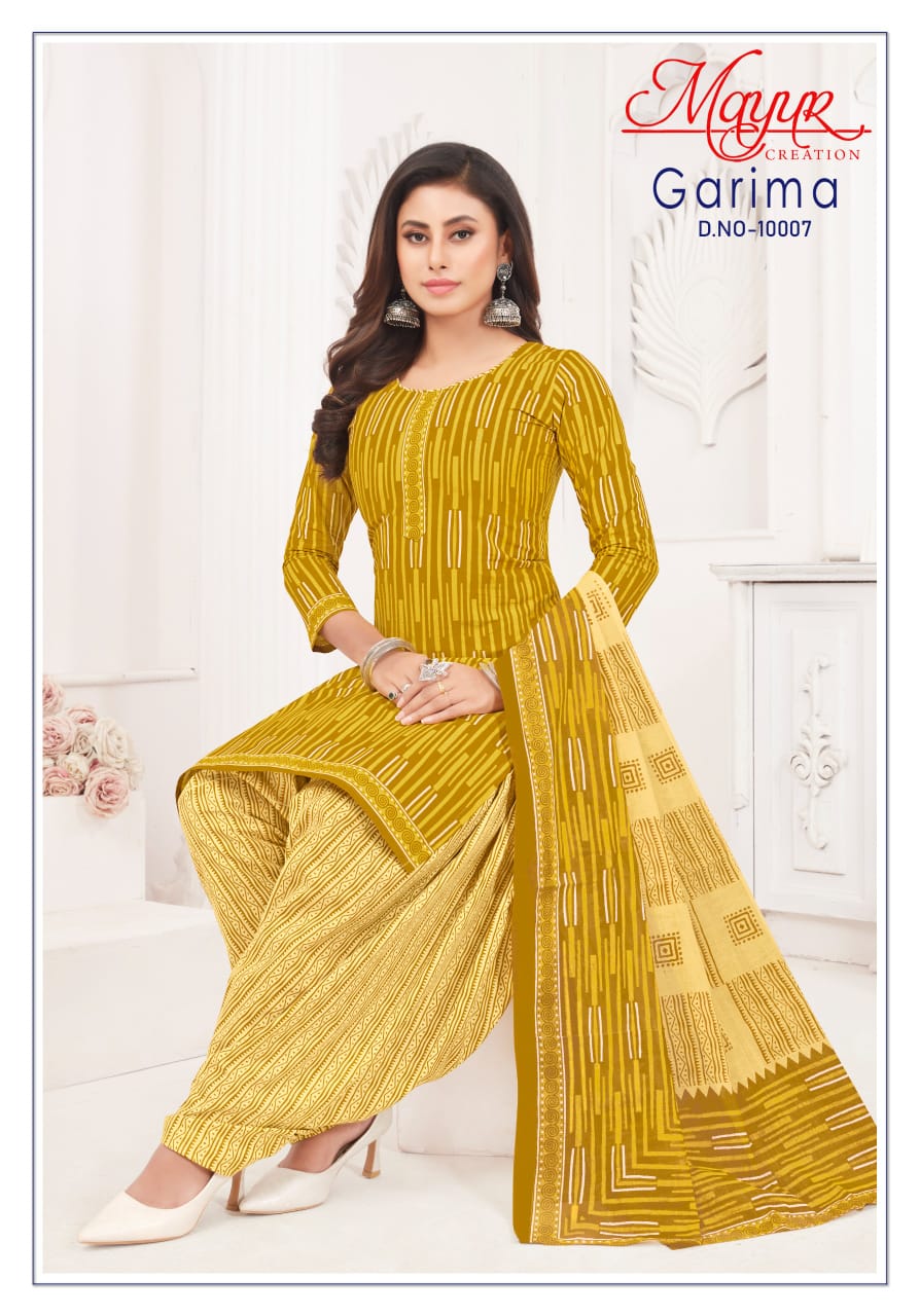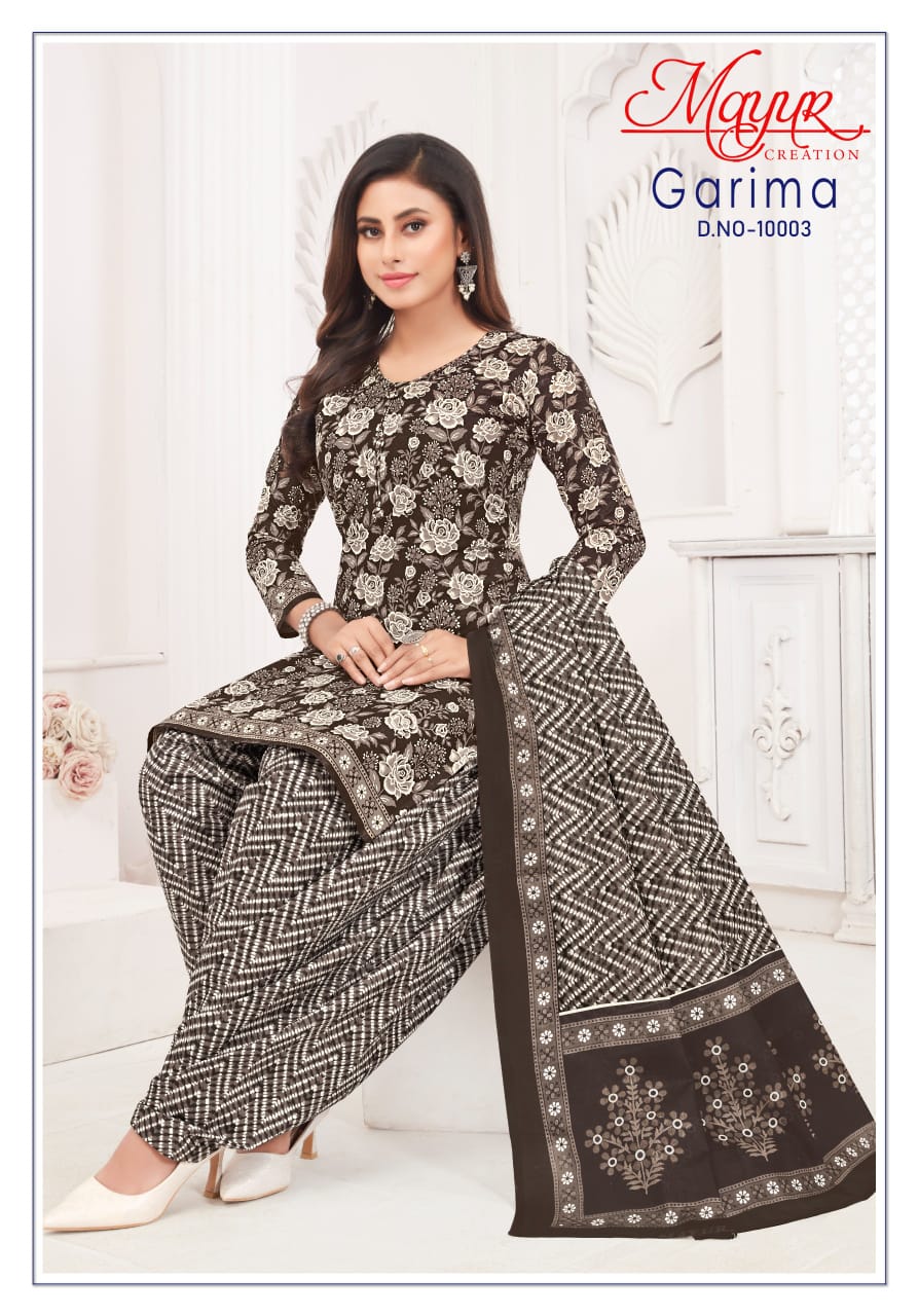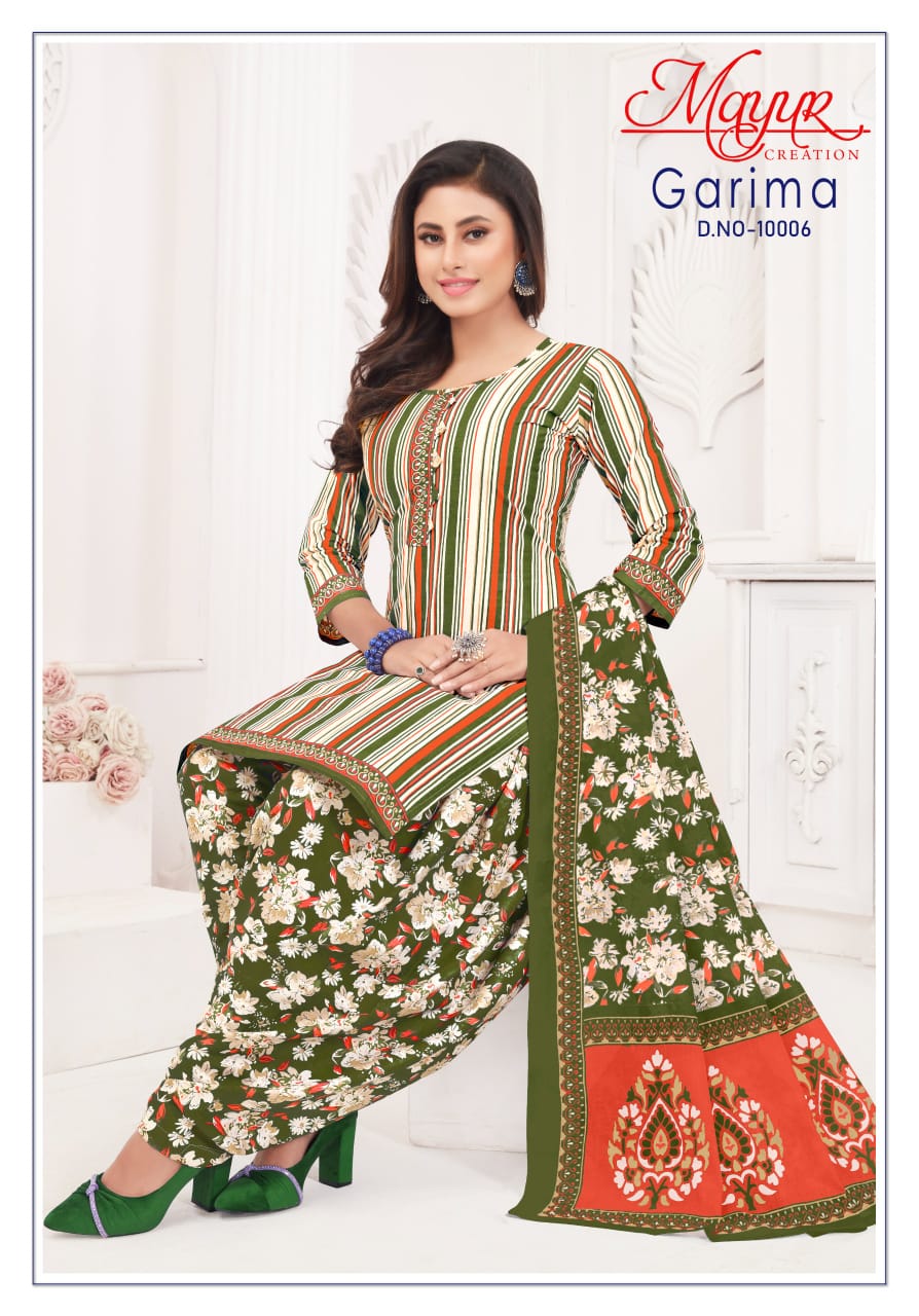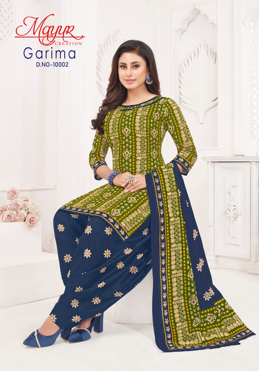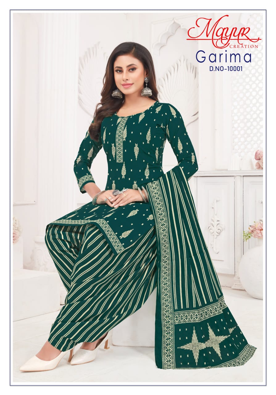 Introducing Mayur Garima Vol-10 – a beautiful collection of cotton printed dress materials, perfect for stylish and comfortable ethnic outfits. This set includes 10 pieces, each featuring 2.00 meters of pure cotton printed fabric for the top, 2.50 meters for the bottom, and 2.25 meters of pure cotton printed fabric for the dupatta. Ideal for everyday wear or casual occasions, this collection offers a perfect blend of comfort and style. Priced at ₹370/- per piece (₹3700/- for the full set), with GST included, the total price is ₹3885/-. Ready to ship within 4–5 working days.