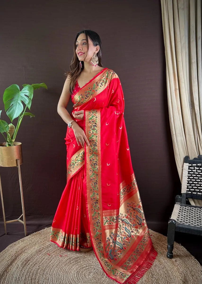 | Saree | Jari Weaving Worked Paithani Silk Saree |