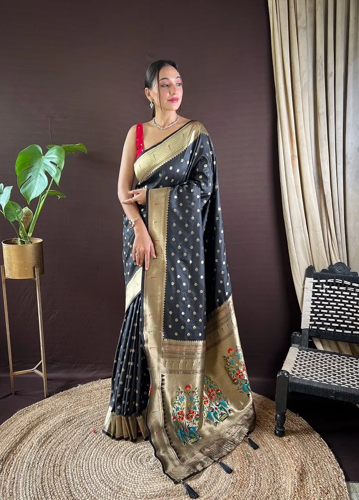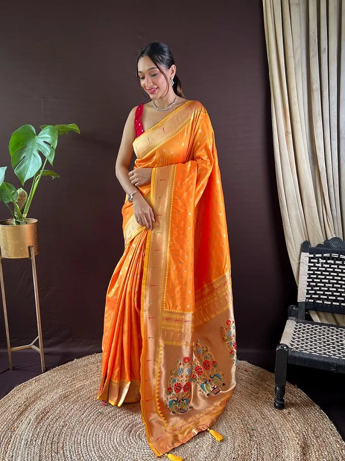 | Saree | Jari Weaving Worked Paithani Silk Saree |