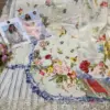Top: Pure cotton print with self-embroidery work, featuring 3 black design patches