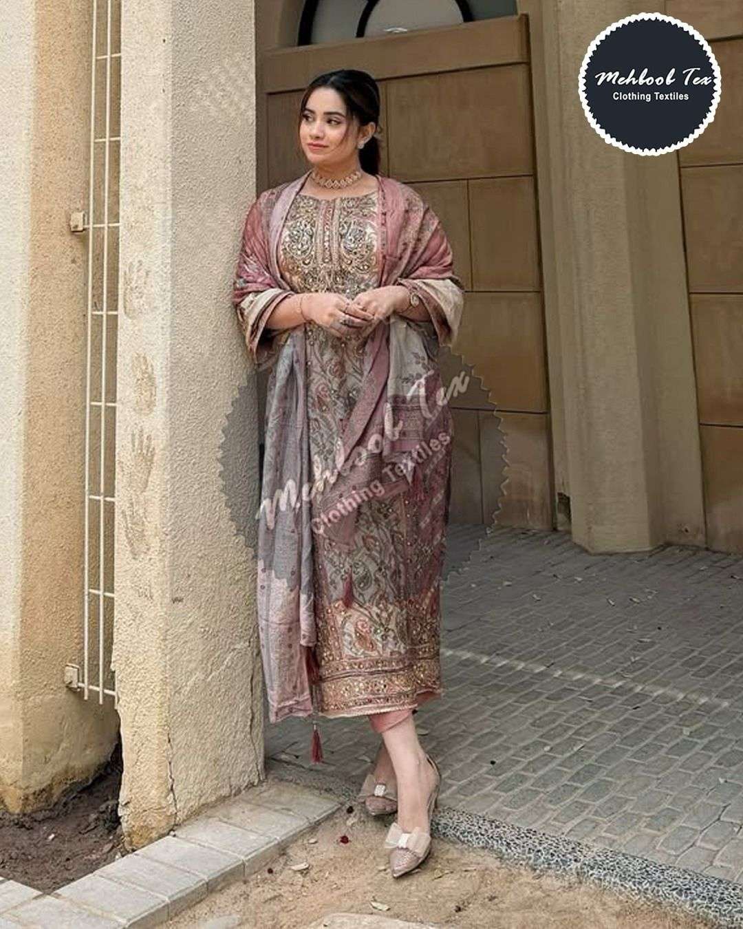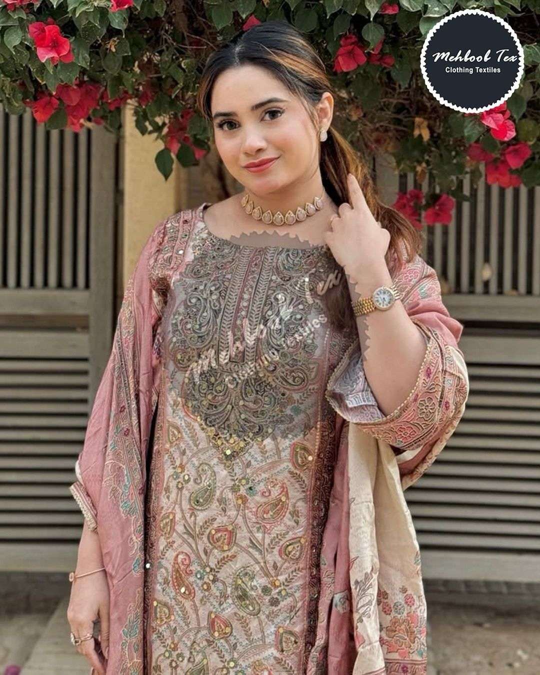 Explore Mehboob Tex Design NO 1614 – 1652 viscose maslin suits here.