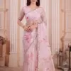 - Blouse: The blouse is made from the same fabric as the saree and also includes a zircon cutwork border.