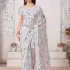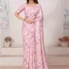 Pure Satin Georgette Digital Print Fabric with Heavy Handwork Zircon Cutwork Border