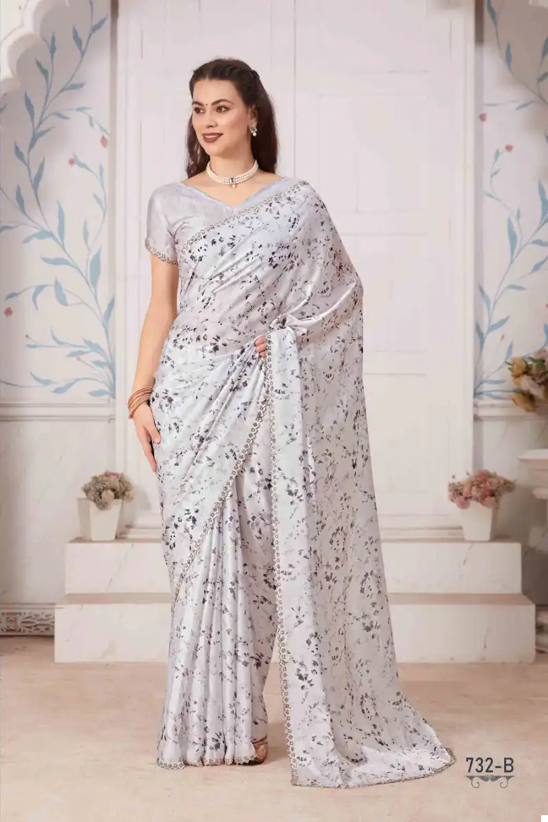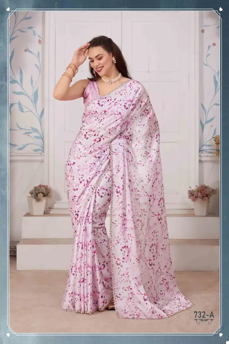 Mehek 732A To 732D Pure Satin Georgette Digital Print Wholesale Fancy Sarees Catalog