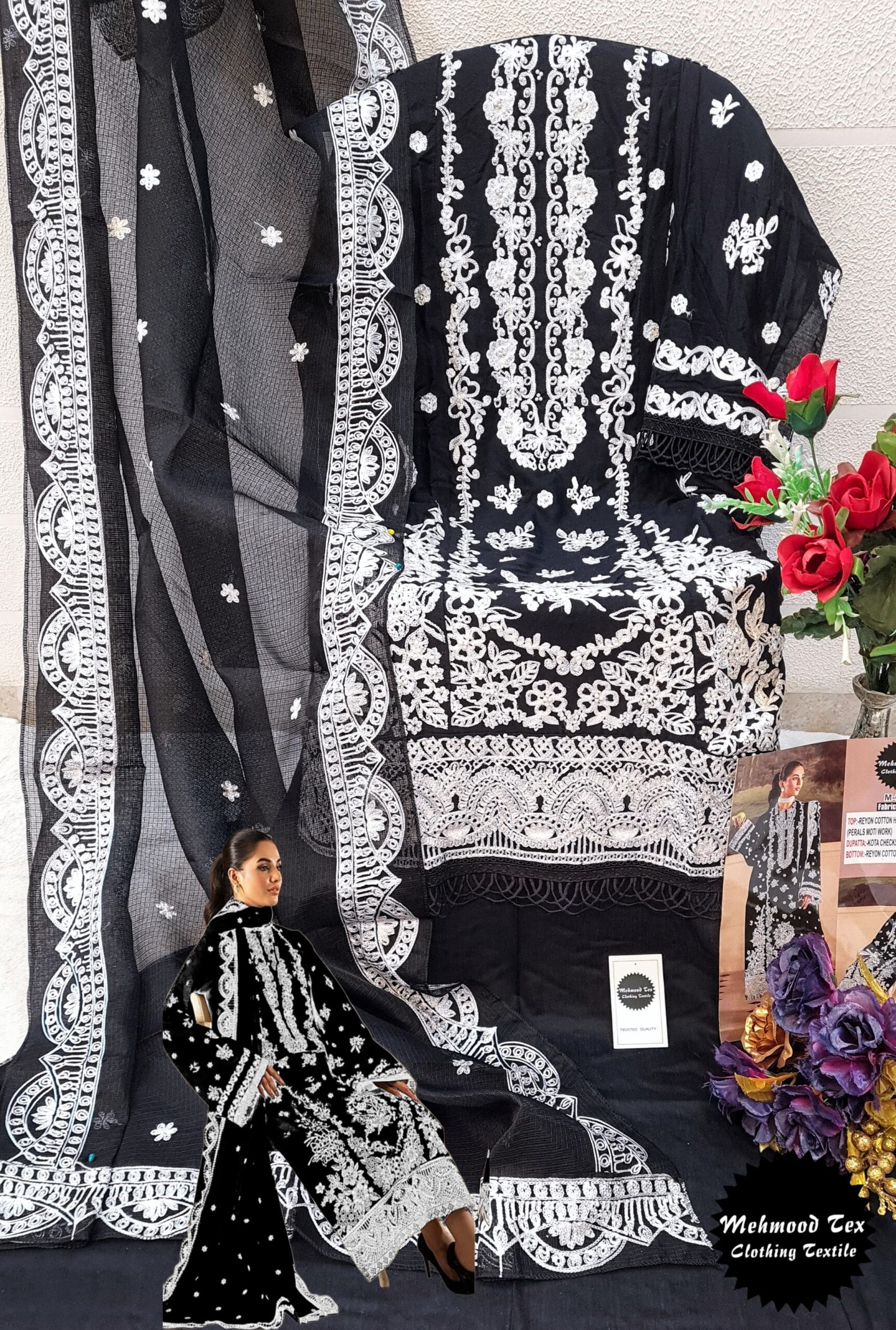- Top: Rayon Cotton with Heavy Embroidery, Pearl Work & Lace Borders