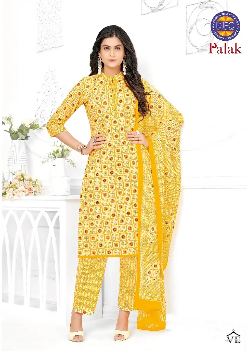 Mfc Palak Vol 2 Cotton Wholesale Readymade Salwar Suit Catalog 12 Pcs. We deal in Kurtis, Sarees, Dresses Materials, Leggings, and Designer Salwar Kameez.