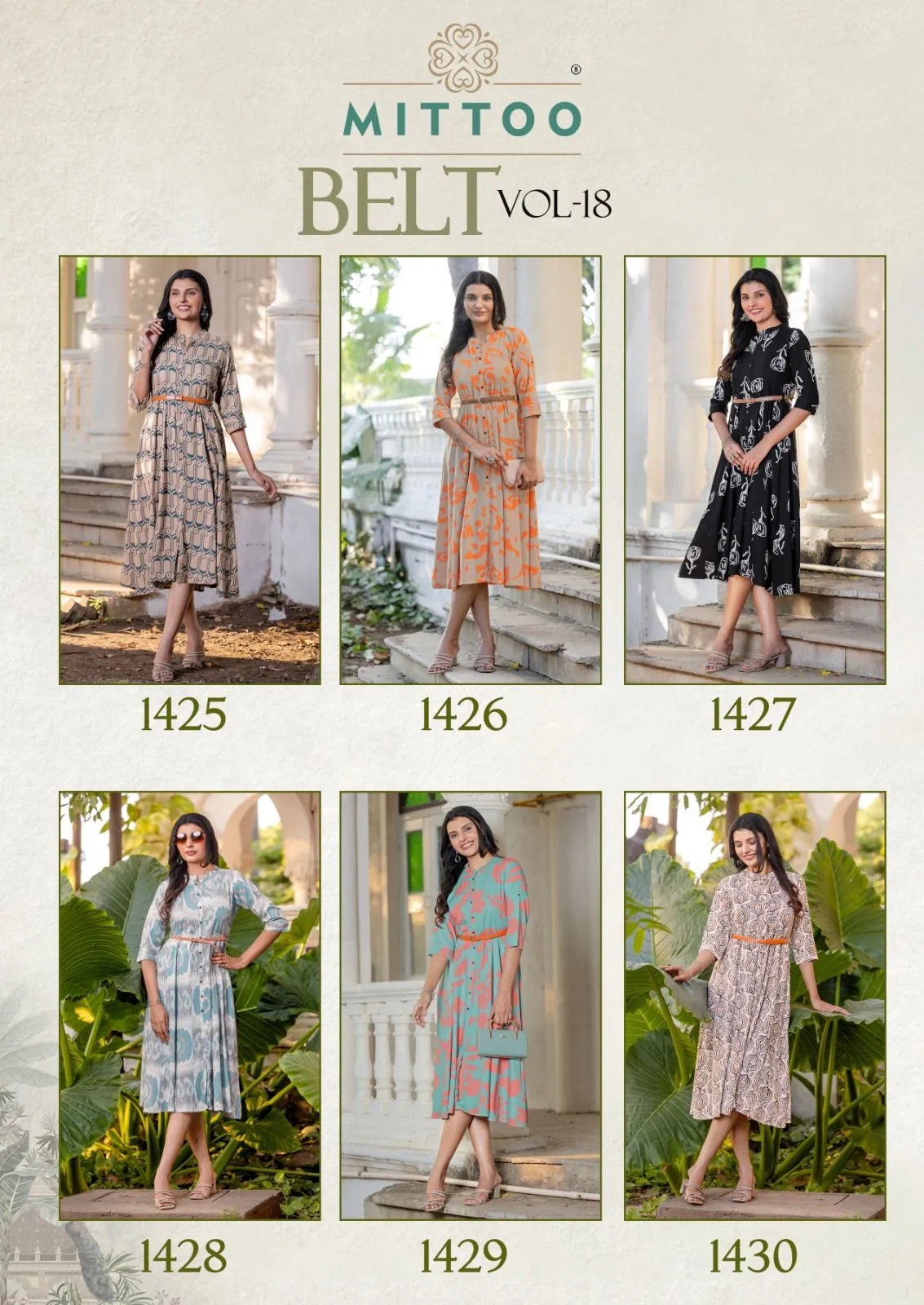 Mittoo Belt Vol 18 Fancy Rayon Printed Wholesale Fancy Kurtis Collection