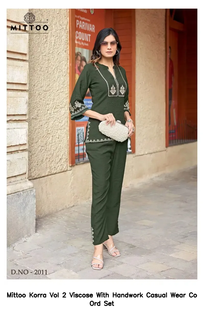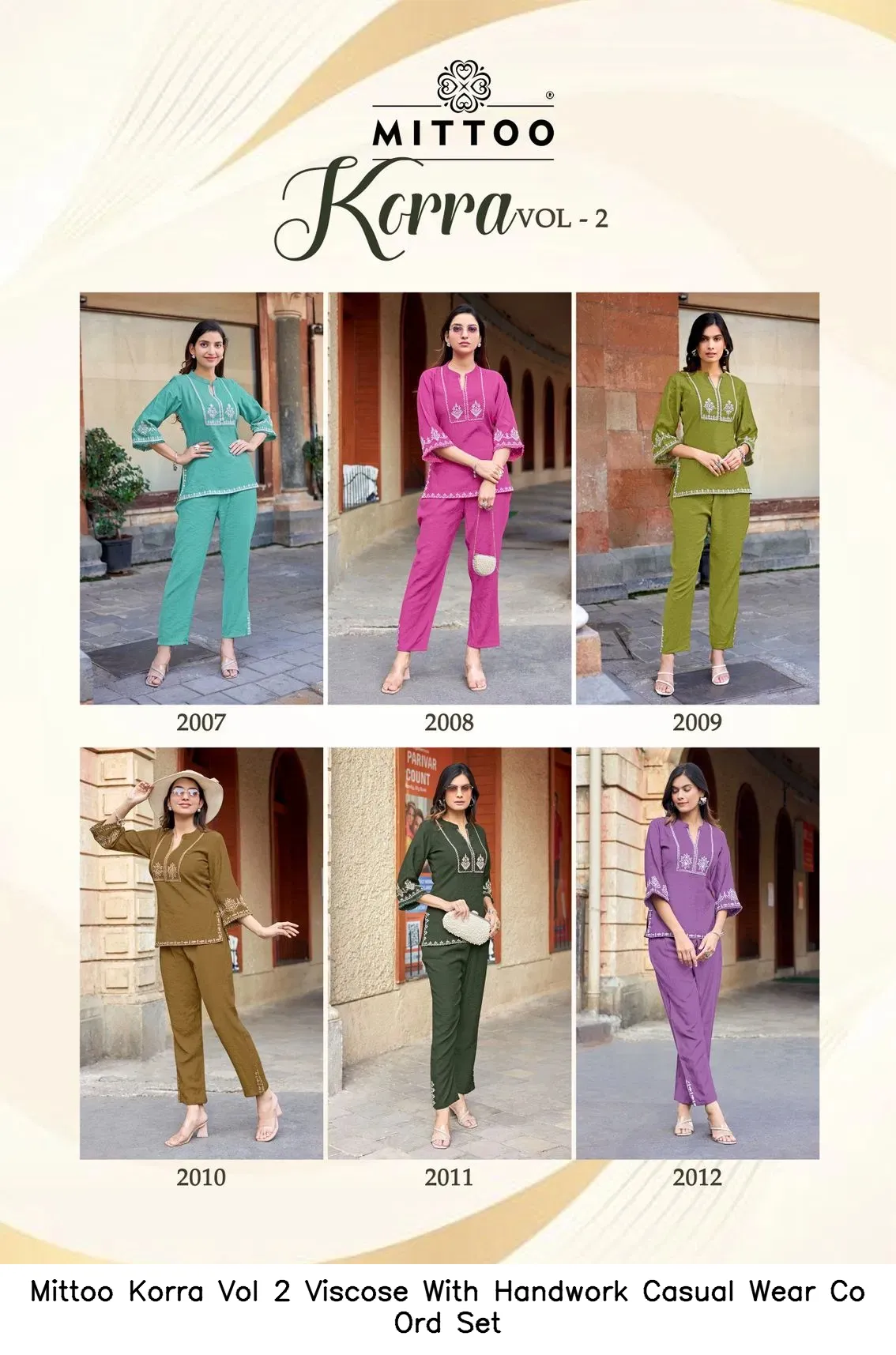 Mittoo Korra Vol 2 Viscose With Handwork Casual Wear Co Ord Set