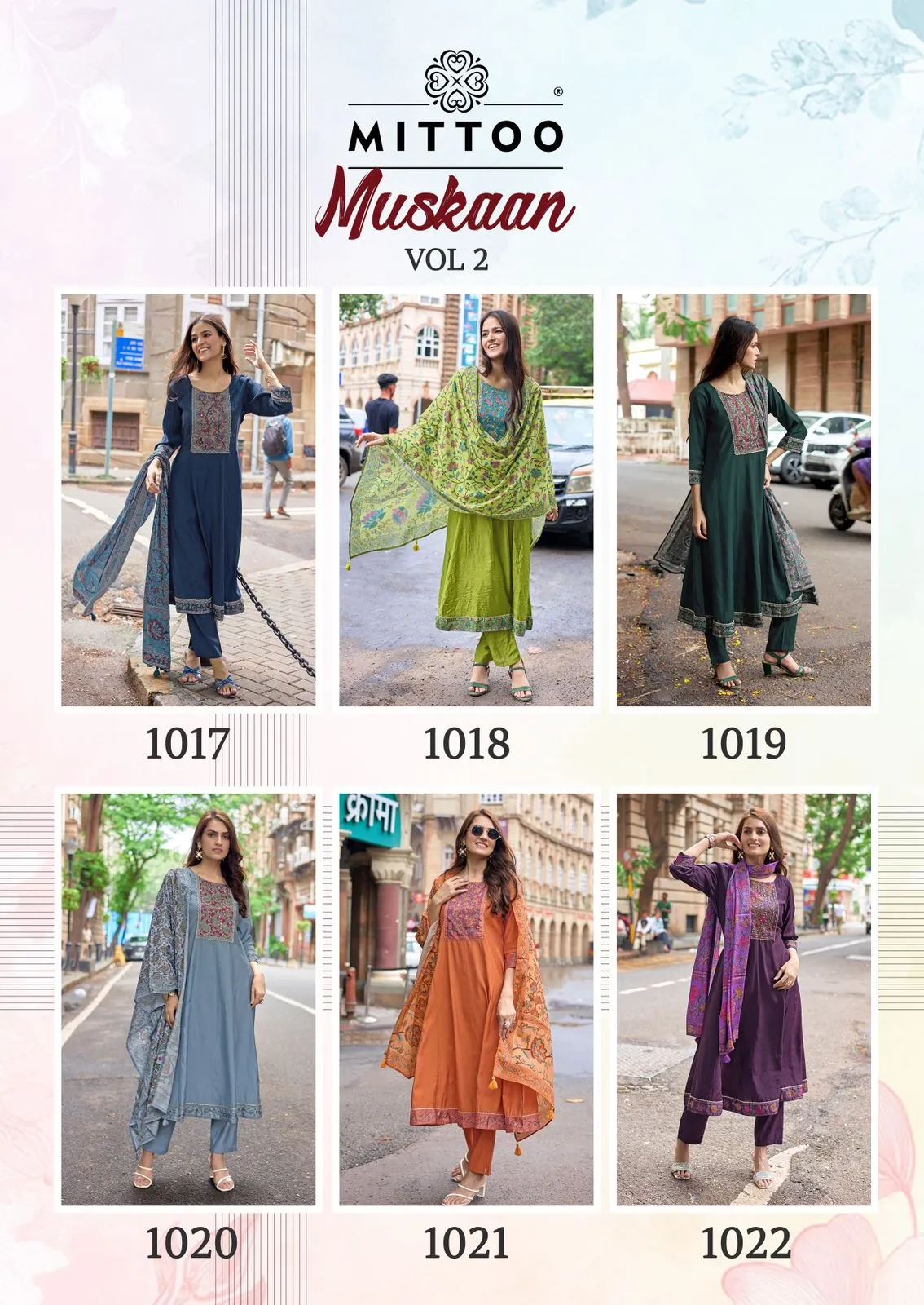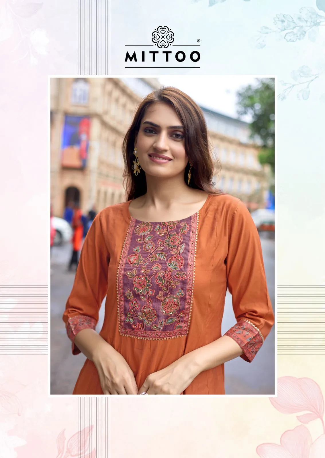 Mittoo Muskaan Vol 2 Modal Silk Handwork Kurti Pant And Dupatta Set