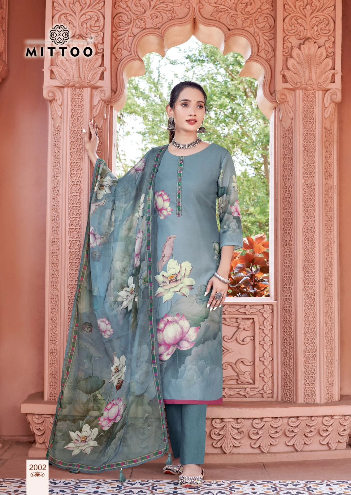 - Top: Satin Print Thread & Handwork with Santoon Inner