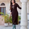- Variety of Silhouettes: These designer kurtis feature a wide variety of silhouettes to cater to different body types and personal styles. From classic straight cuts to trendy A-line and high-low designs, there’s a kurti for every taste.