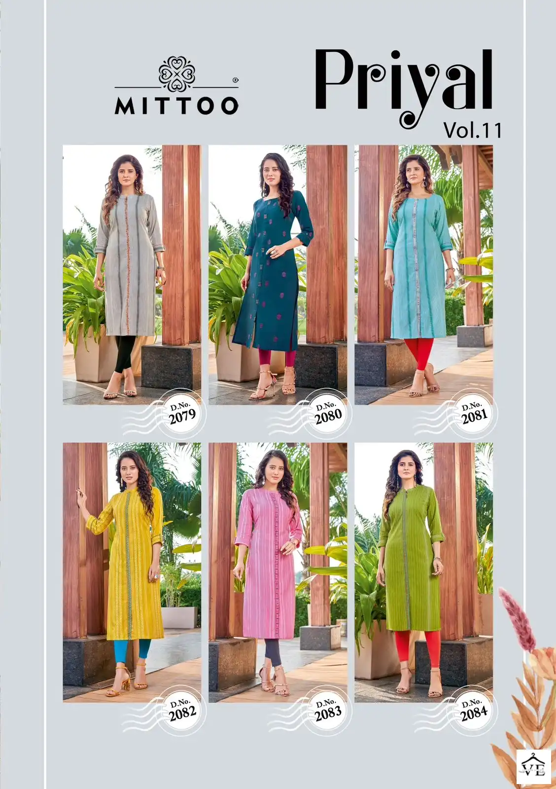 Mittoo Priyal Vol 11 Pure Handloom Cotton Wholesale Kurtis Catalog 6 Pcs. We deal in Kurtis, Sarees, Dresses Materials, Leggings, and Designer Salwar Kameez.