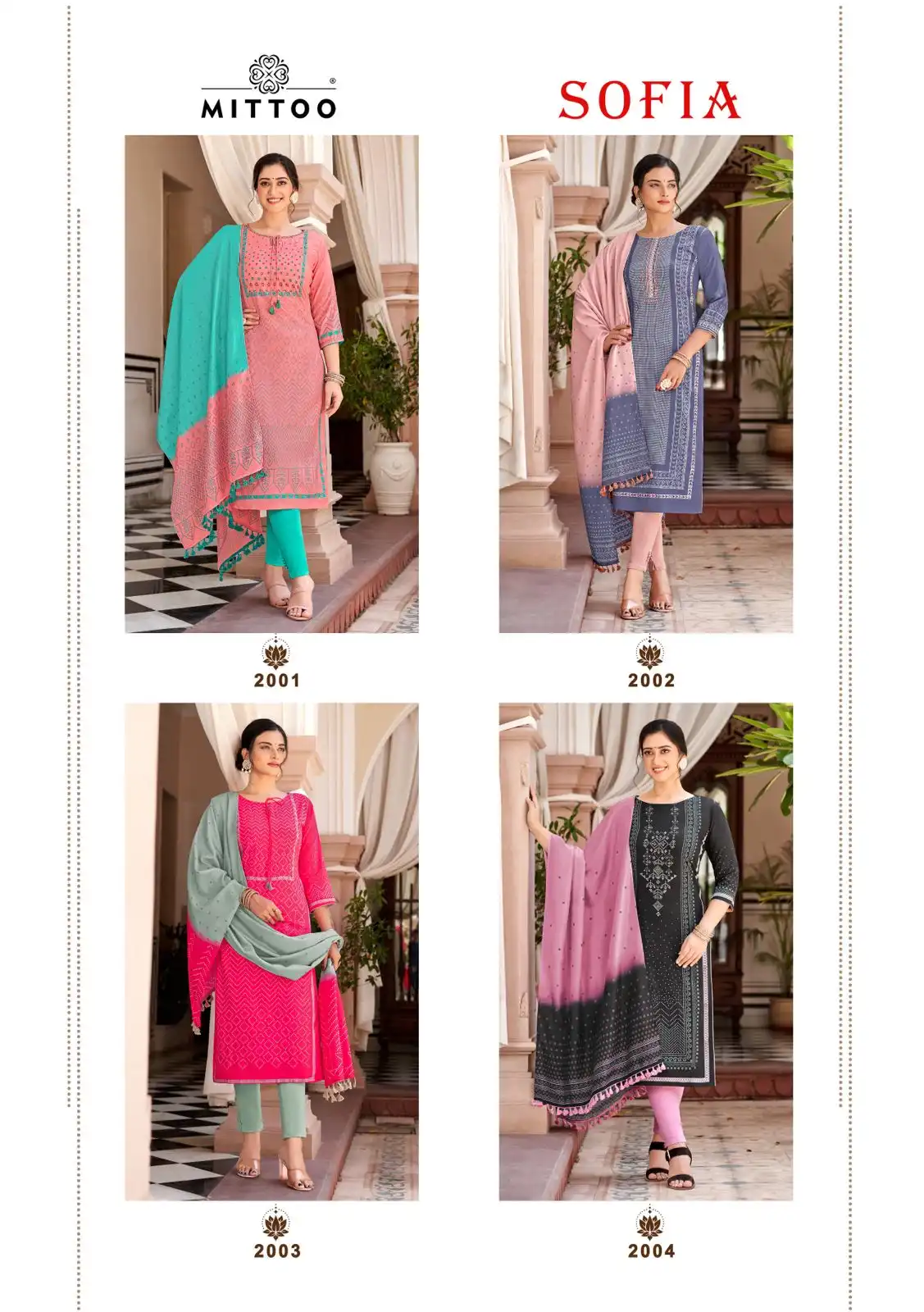 Mittoo Sofiya Rayon Print Wholesale Readymade Salwar Suit Catalog