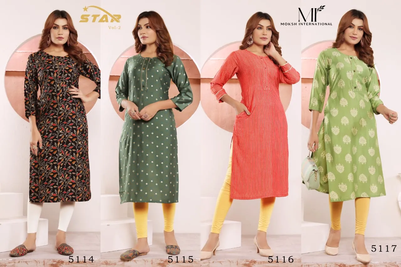 Moksh Star Vol 2 Viscose Printed Wholesale Fancy Kurtis Collection