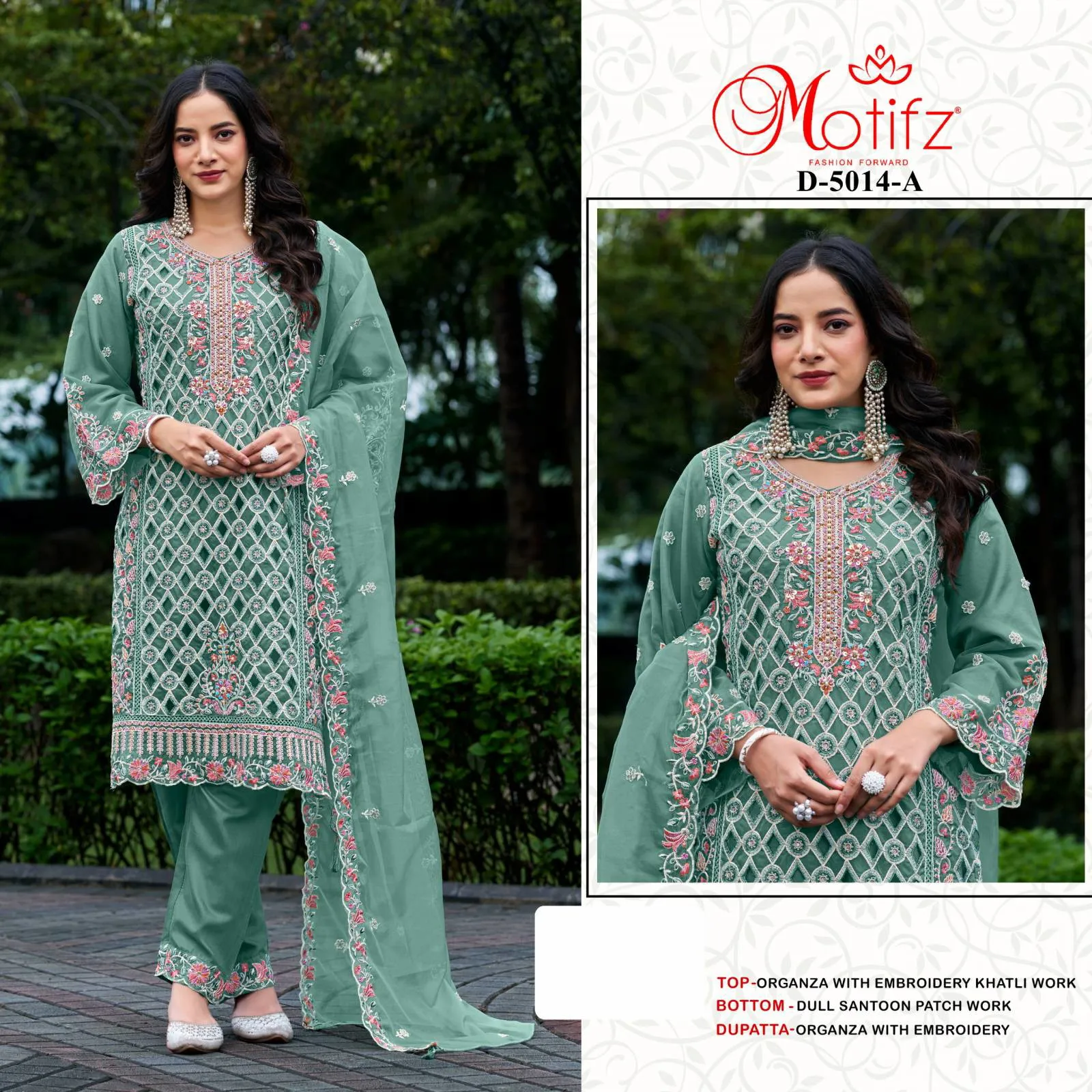 Motifz 5014 A C D Organza Embroidery Khatli Work Pakistani Suits
