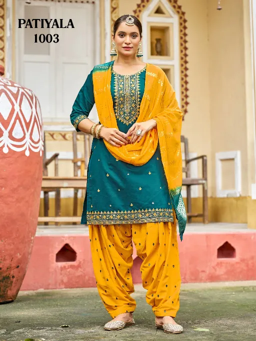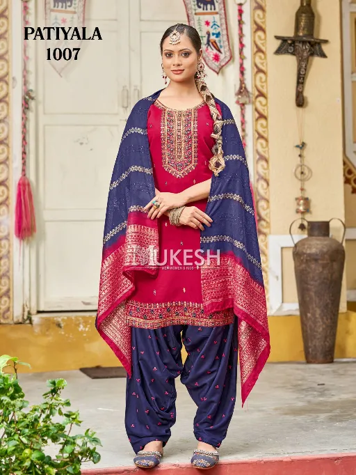 Mukesh Patiyala Readymade Wholesale Silk Embroidered Patiala Suit Catalog.