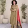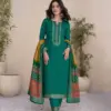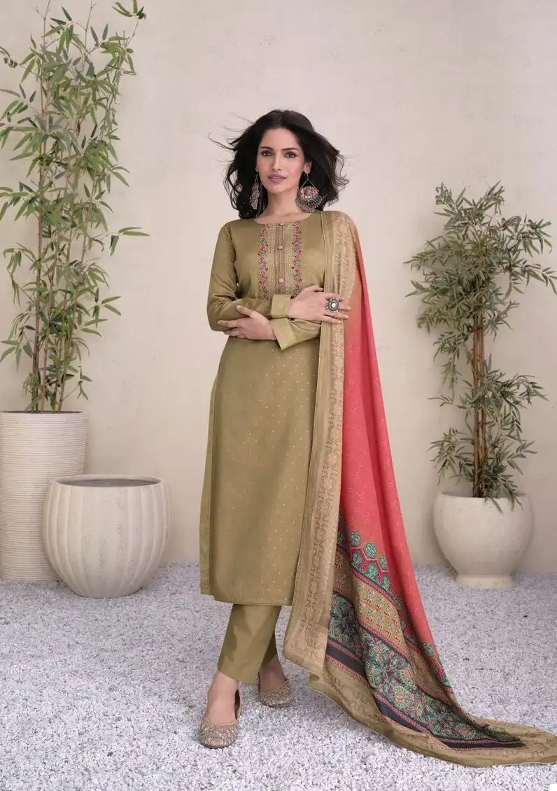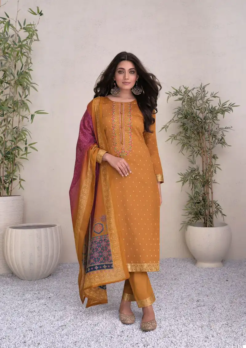 Pure Jam Satin Digital Foil In Sleeves Daman & Pant With Heavy Neck Embroidery |