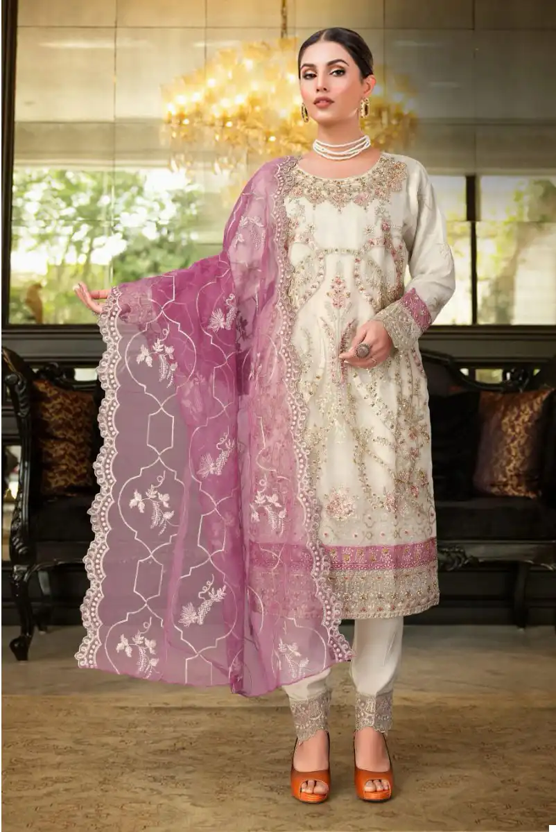 Dupatta: Complementing the top, the set features a pure organza dupatta, mirroring the top’s finesse. The dupatta is adorned with matching work, adding cohesiveness and grace to the overall look.