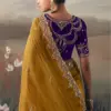 - Paired with a royal purple embroidered blouse, this saree creates a striking contrast that elevates its traditional charm. The graceful drape and refined embroidery make it an ideal choice for weddings, festive celebrations, receptions, and cultural occasions.
