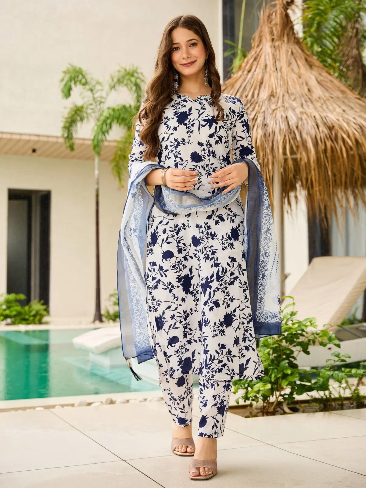 Product Name: Mv 636 Silk Blend Printed Kurti With Bottom Dupatta Set