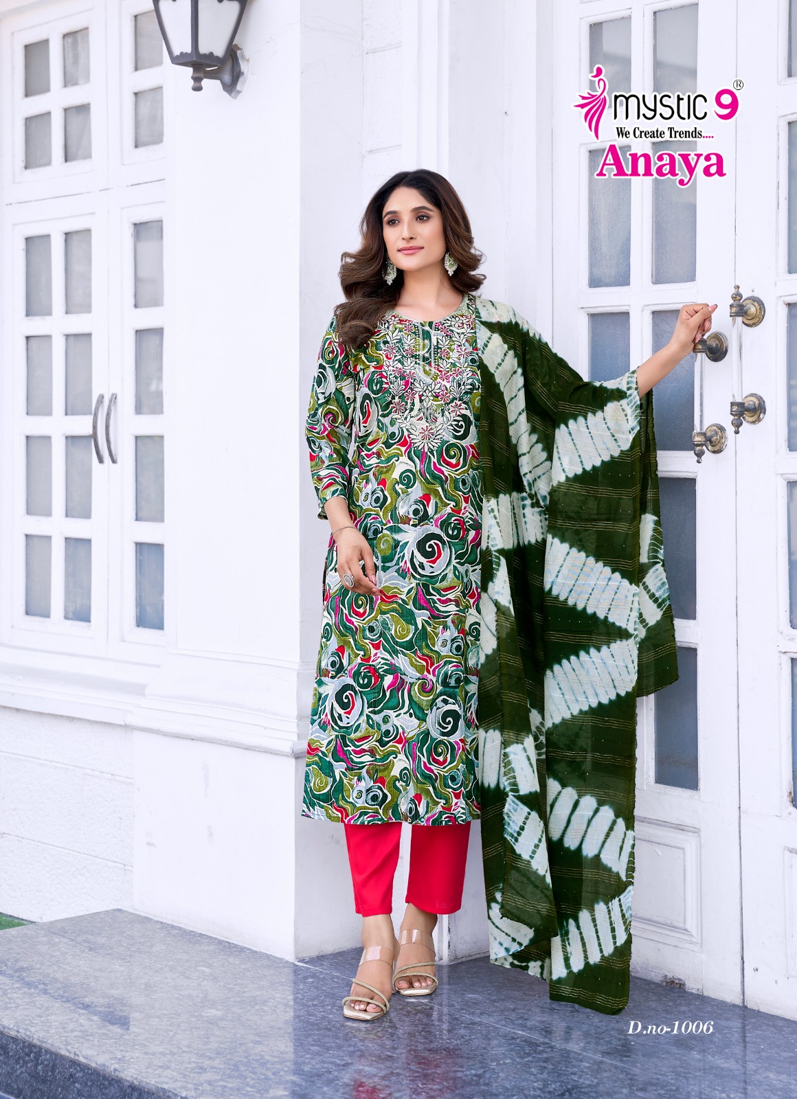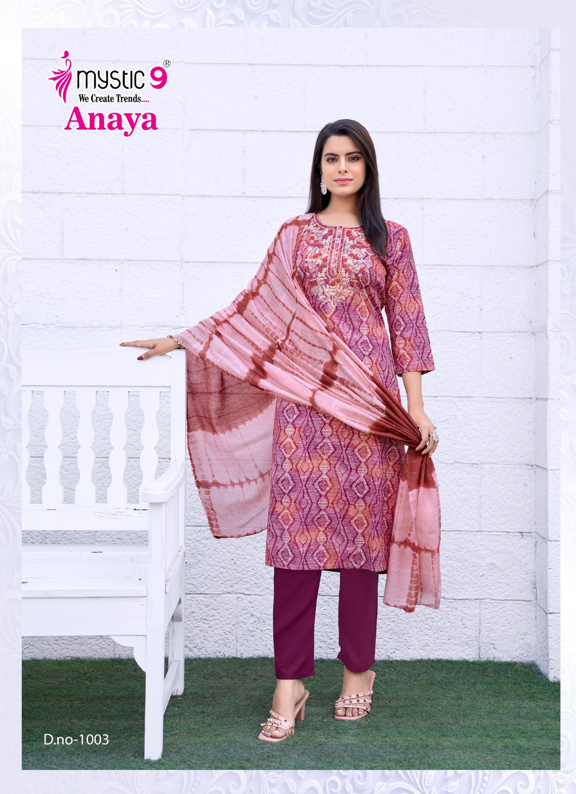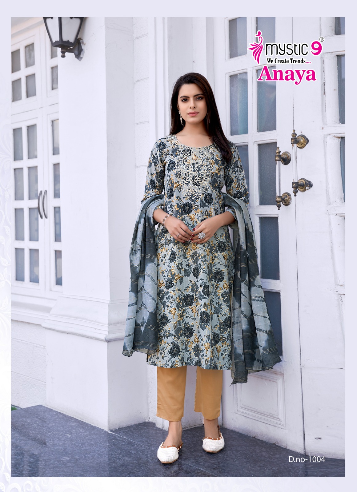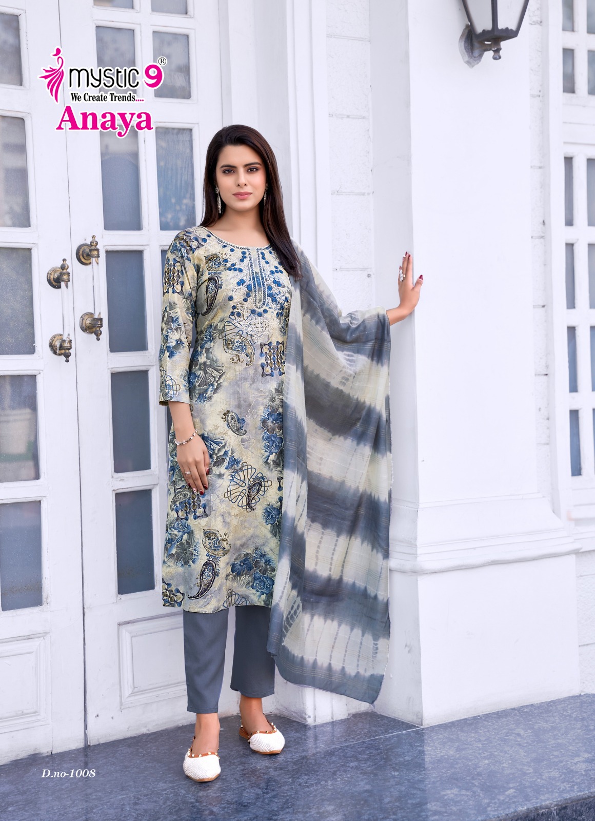 - Top: Rayon Dobby with Lurex Foil Print and Embroidery on Neck for a stylish and elegant look.
