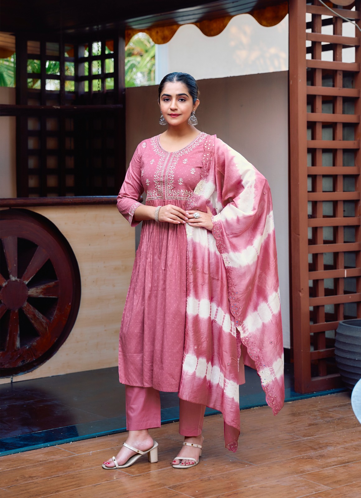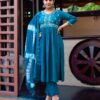 - Top: Cotton Dobby with intricate all-over embroidery work, including sleeves and side detailing.