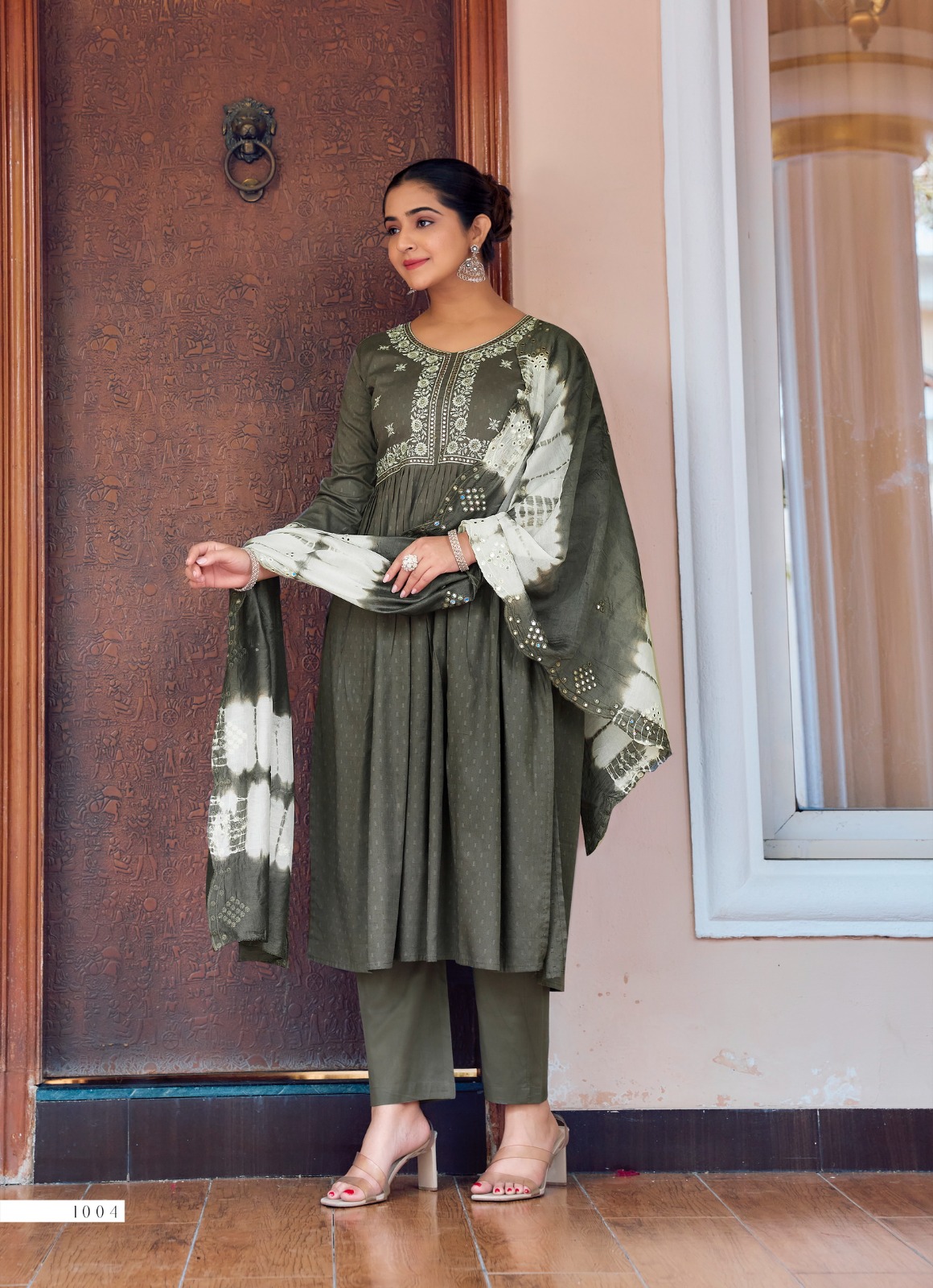 - Dupatta: Chanderi Cotton adorned with mirror work for a sophisticated touch.
