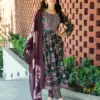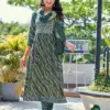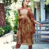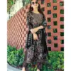 Heavy Premium Black Rayon Foil Print Fabric Nyra Stitched with Embroidery on Neck, Sleeves 46 Inch Height |