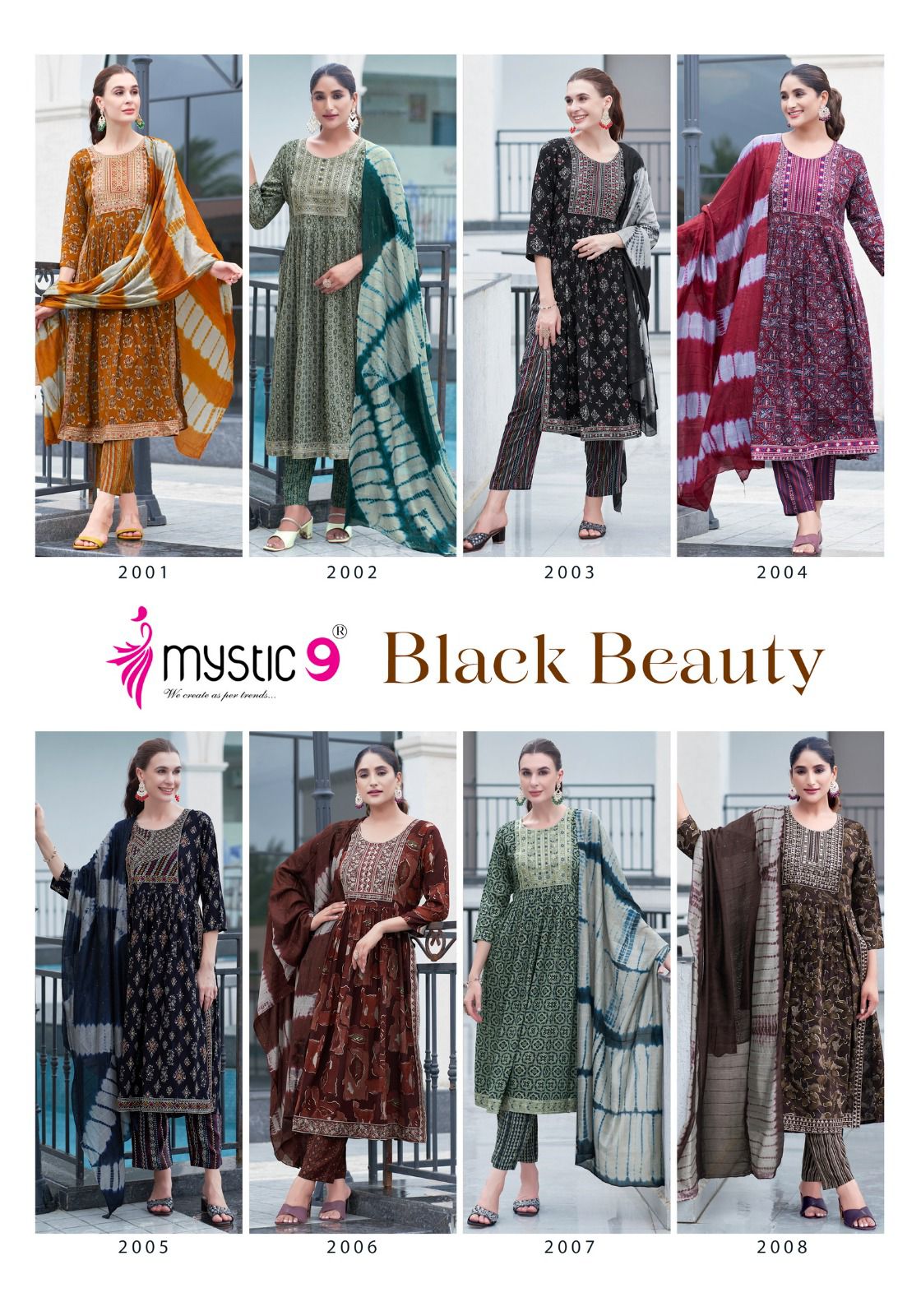 Mystic 9 Black Beauty Vol 2 Rayon Foil Print Wholesale Readymade Salwar Suit Collection