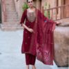 The Fiza Vol-3 Collection is crafted for those who appreciate premium quality and intricate designs. The Bangalore silk fabric offers a luxurious feel, while the embroidery and interlock details add a touch of sophistication. The muslin digital print dupatta completes the look, making it perfect for weddings, festivals, or special events.