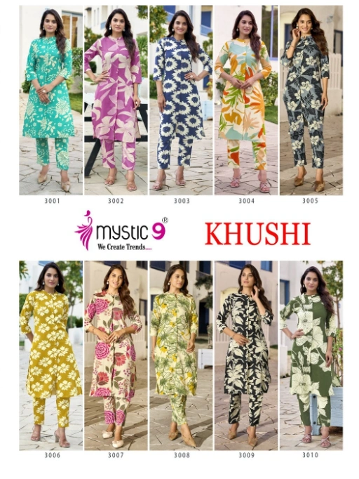 Buy Mystic 9 Khushi Vol 3 premium viscose co-ord sets online at wholesale price.