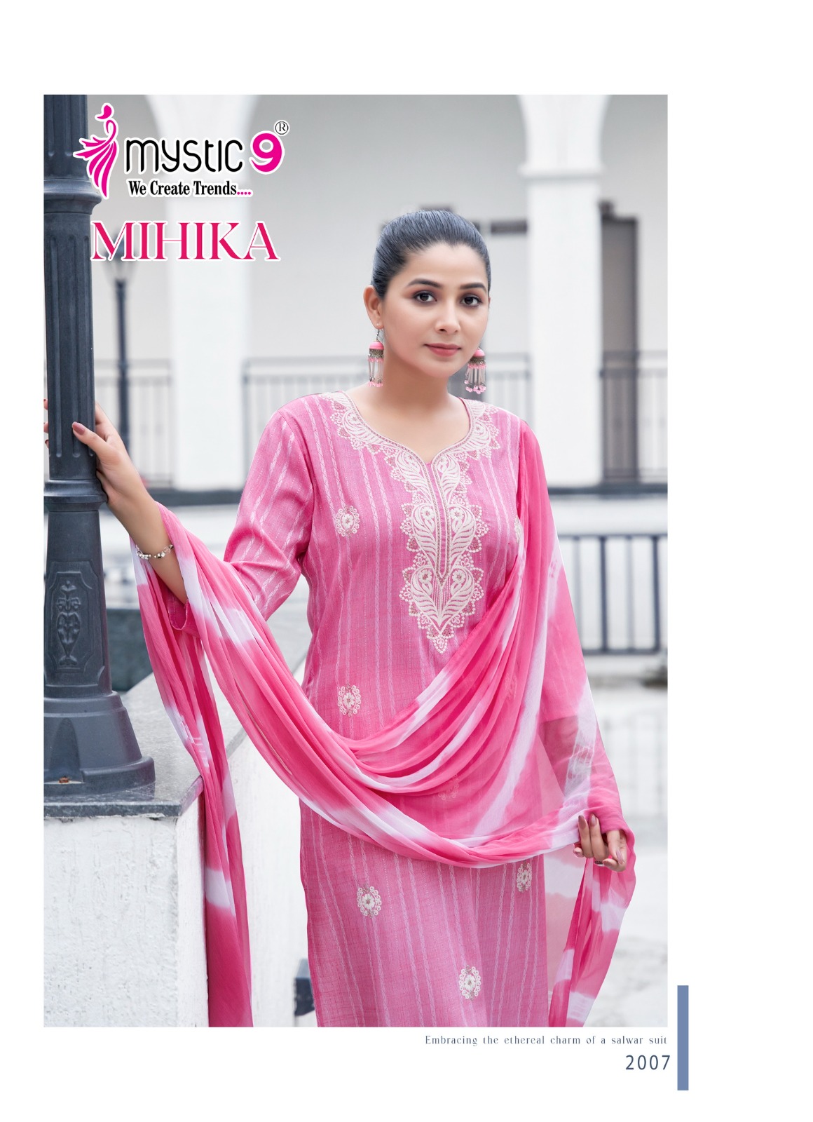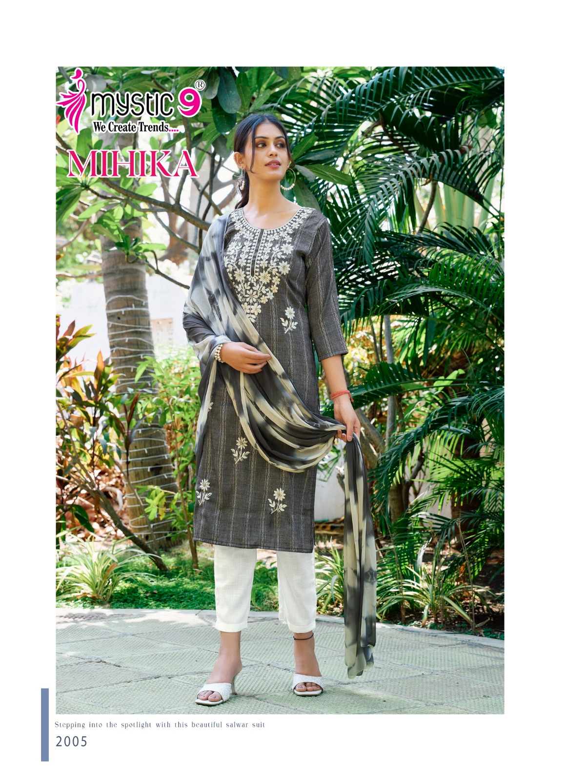 Mystic 9 Mihika Vol Embroidered Lurex Dobby Kurti Dupatta Rayon Collection.