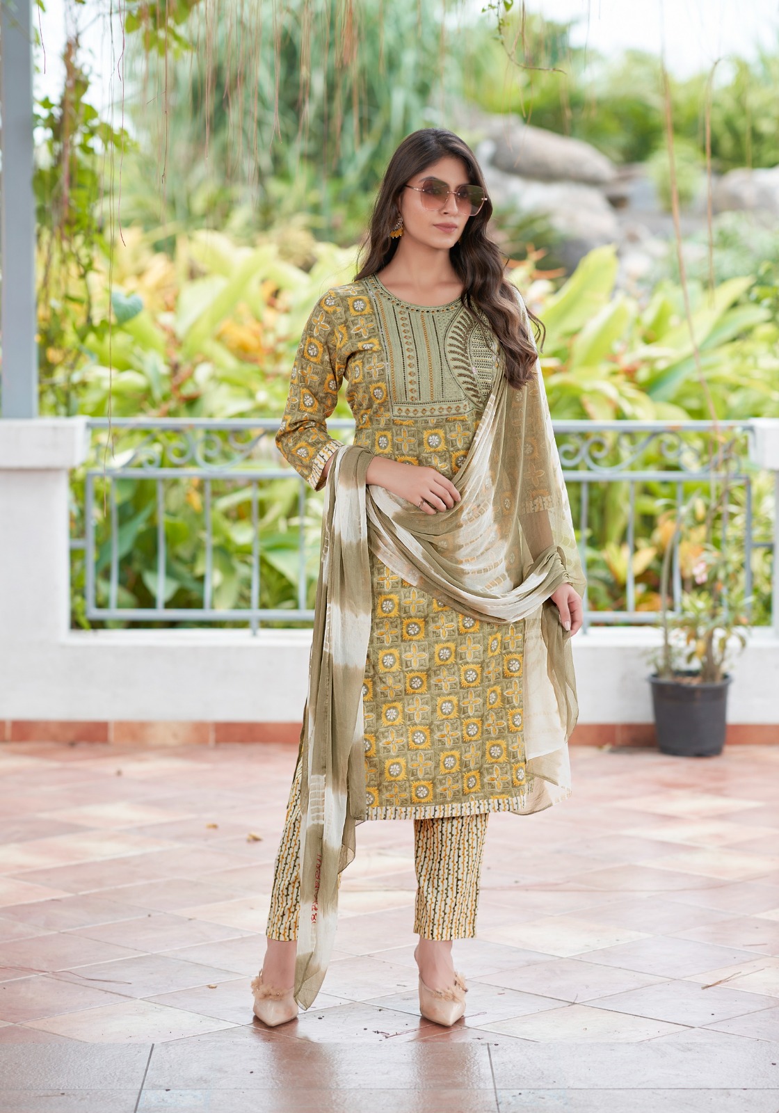 Rayon Capsule Foil Print With Side Lock, Sleeves Lock And Embroidery